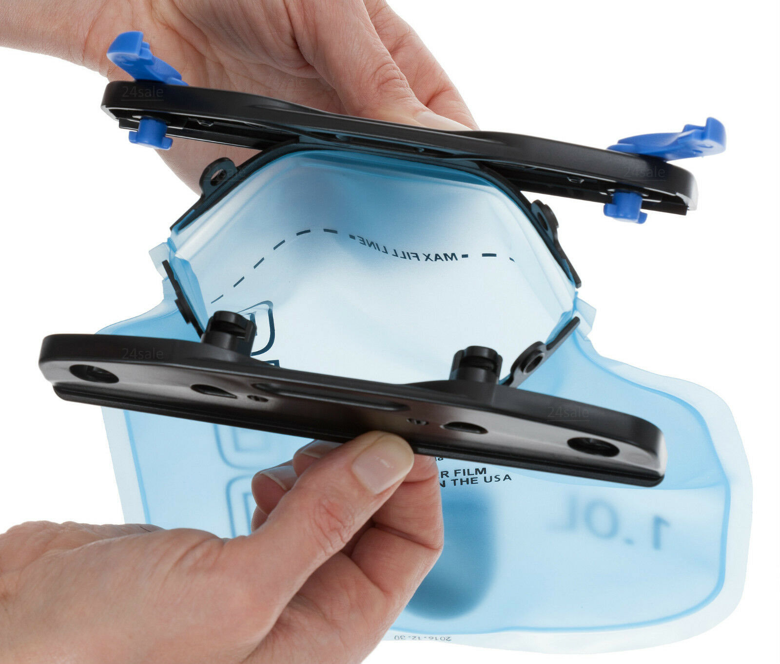 - Емкость для воды объемом 1 литр, изготовленная в США из материала mPE/EVA, с антибактериальными свойствами, без BPA, без вкуса и запаха.