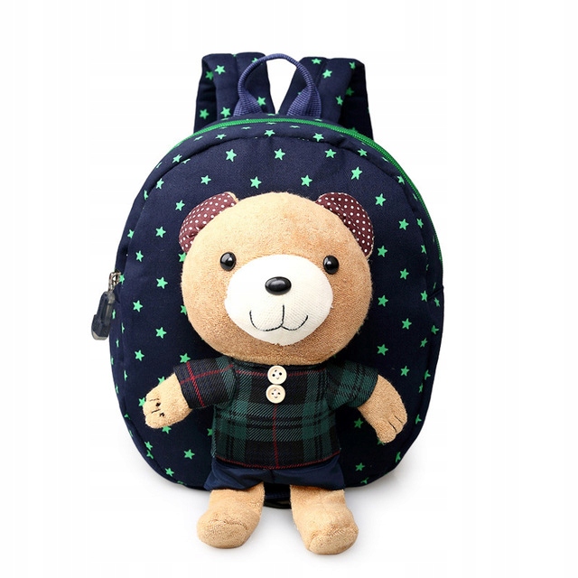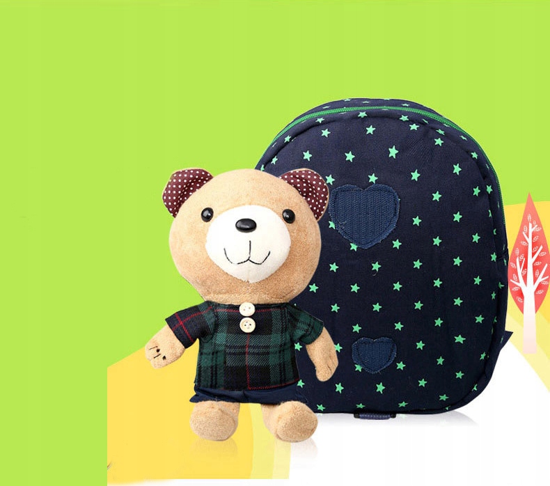 Милый плюшевый мишка на рюкзаке – это съемная игрушка, с которой ребенок может играть.