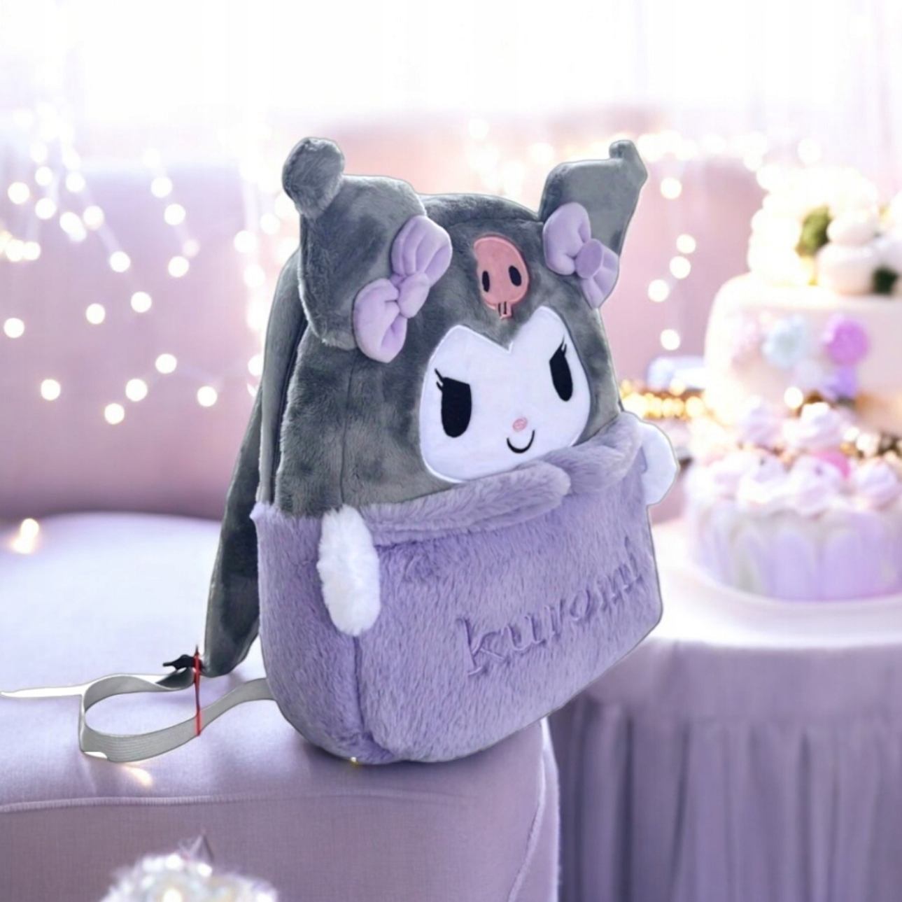 плюшевый рюкзак -это очаровательное добавление для поклонников "Куроми". h1> ✅, выпадный из мягкого, приятного к сенсорному материалу, в сумке есть знаменитый талисман Kuromi h1> Кроме того, в сумке есть детали, такие как большие уши, что делает его не только практичным, но и стильным.