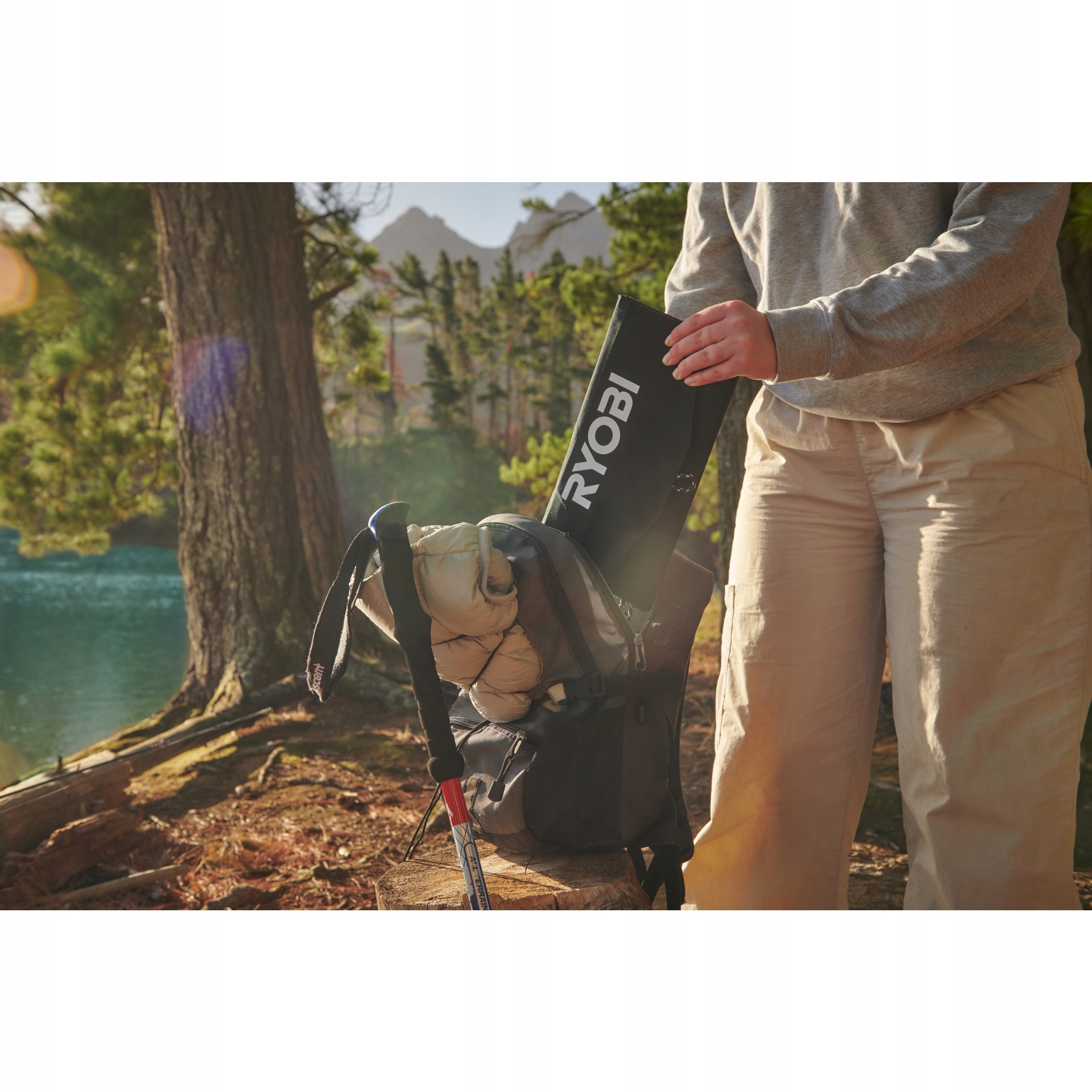 - Солнечная панель RYOBI мощностью 21 Вт идеально подходит для питания ваших устройств в пути.