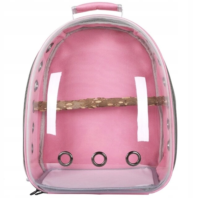 Рюкзак имитирует прозрачную клетку для вашего попугая, дополнительным преимуществом является палка, на которой птица может свободно сидеть во время транспортировки. Широкий угол обзора снижает уровень стресса птицы