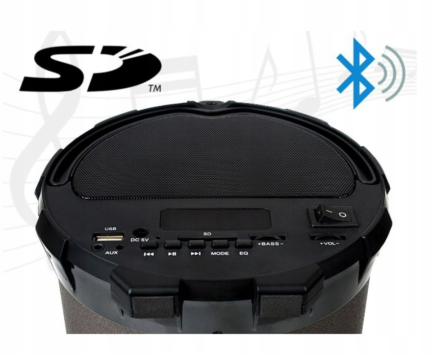 Представляем портативную колонку с сабвуфером, устройством чтения USB-памяти, встроенным Bluetooth и радио.
