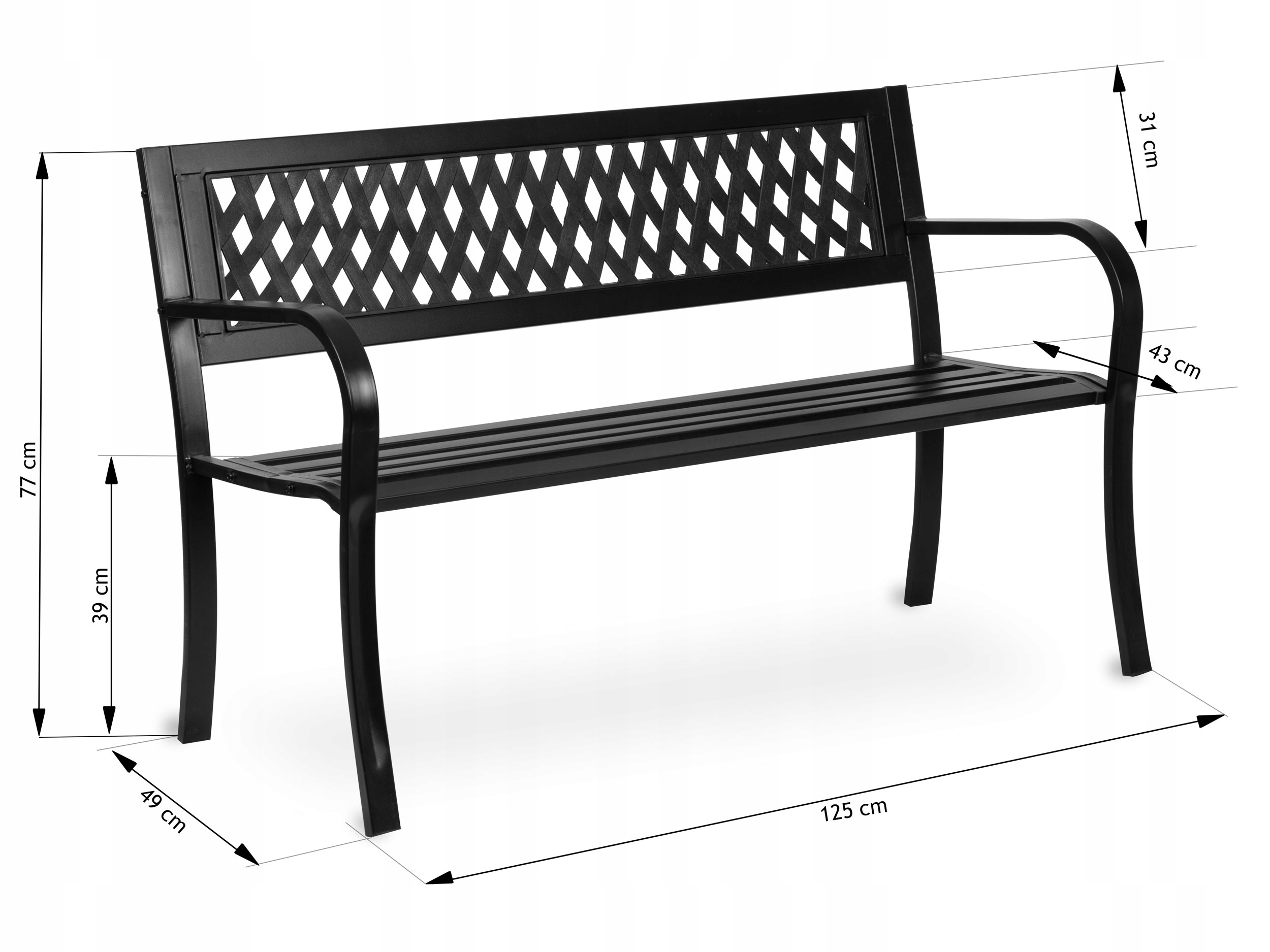 Садовая скамейка металлическая терраса с спинкой 125x77x49 Сплошной черный клевер