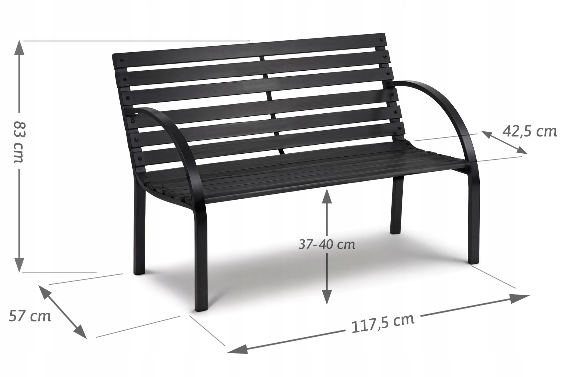 Сад, терраса, металлическая скамейка, с спинкой из 2 -го личного, черного, Лука