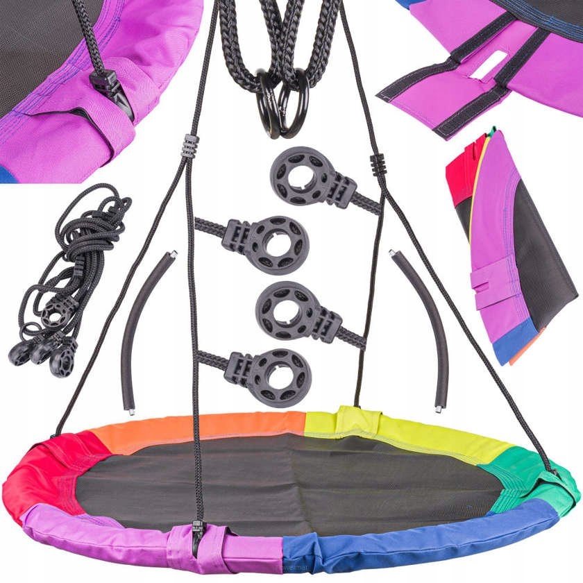 Высота свинга может быть отрегулирована в диапазоне 91 - 140 см. Система регулировки была изготовлена из металла, а застежка из нейлоновой веревки было прочно сварено и усилено пластиковой защитой, благодаря которой качание имеет емкость до 150 кг.