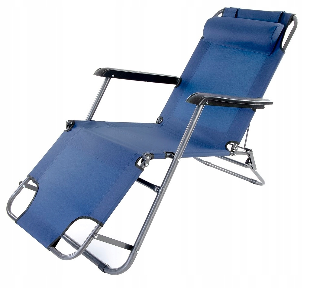 Шезлонг — долговечное изделие, которое можно использовать как в саду, так и на террасе. Это также идеальное решение для отдыха на пляже. Положение сиденья шезлонга бесступенчато регулируется в зависимости от наших потребностей. Его можно разложить почти до горизонтального положения. Сиденье и спинка изготовлены из прочной полиэфирной ткани, прочный каркас – из стали, покрытой черным лаком.
