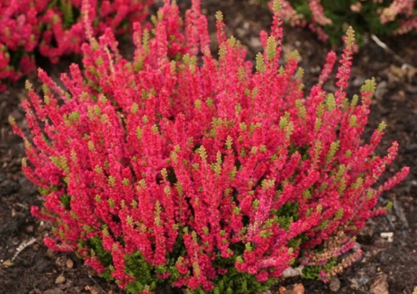 Хит – очень декоративный кустарник, принадлежащий к семейству вересковых, отличающийся кустистой формой. Деревянистые побеги покрыты мелкими чешуйчатыми серо-зелеными листьями. Маленькие колокольчатые цветки различной окраски (в зависимости от сорта) от белого, розового, фиолетового и красного.