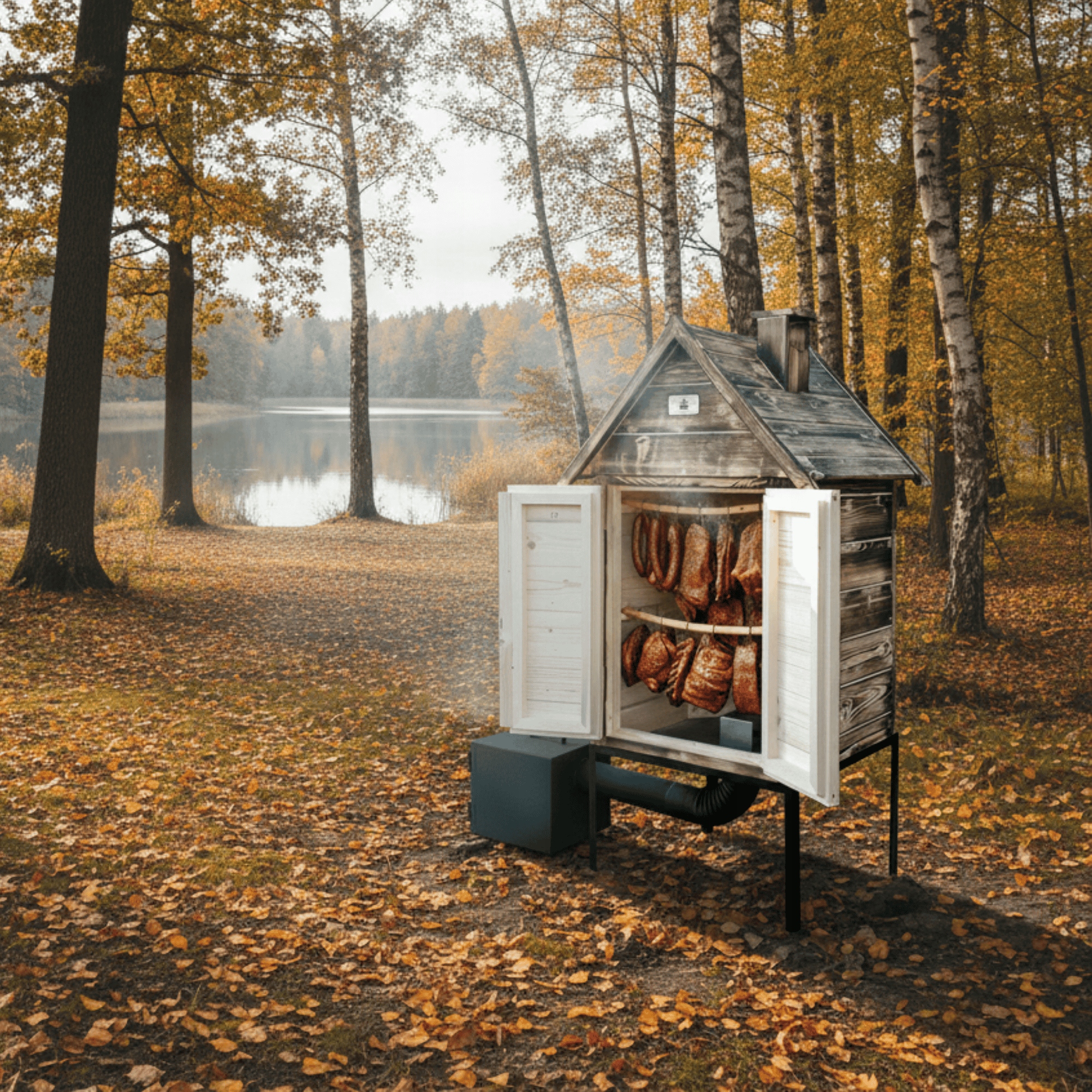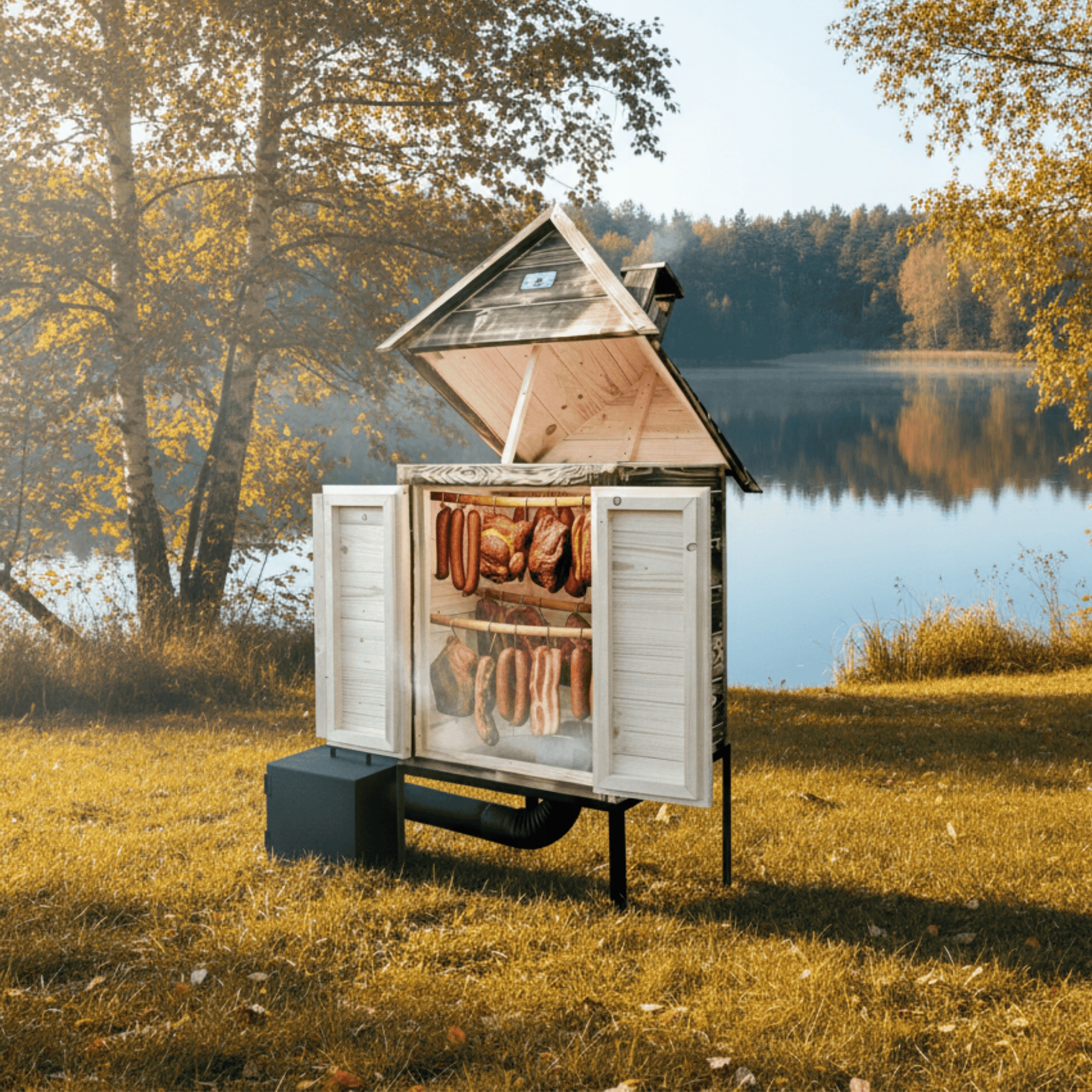 • Все элементы после копчения помещаются в деревянную коптильную камеру. Это обеспечивает мобильность коптильни.