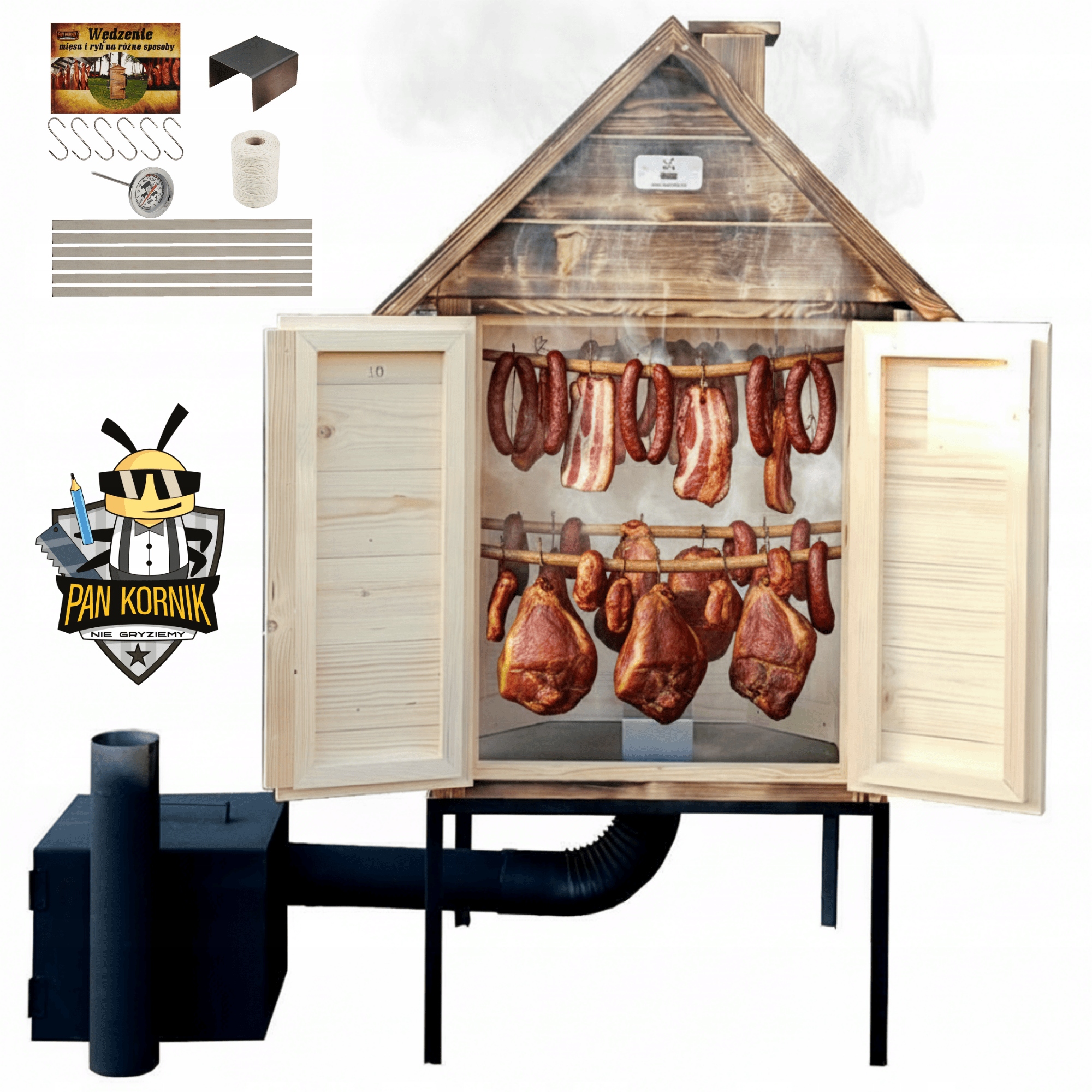 • Неокрашенное дерево изнутри, что гарантирует, что продукты копчения не пропитаются запахом краски