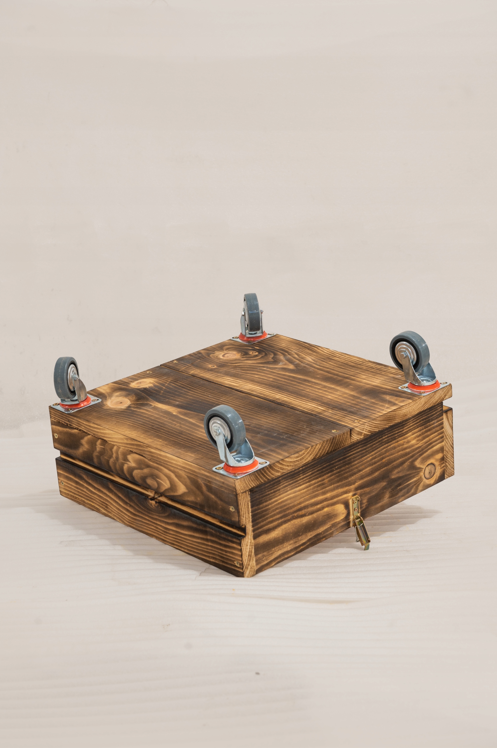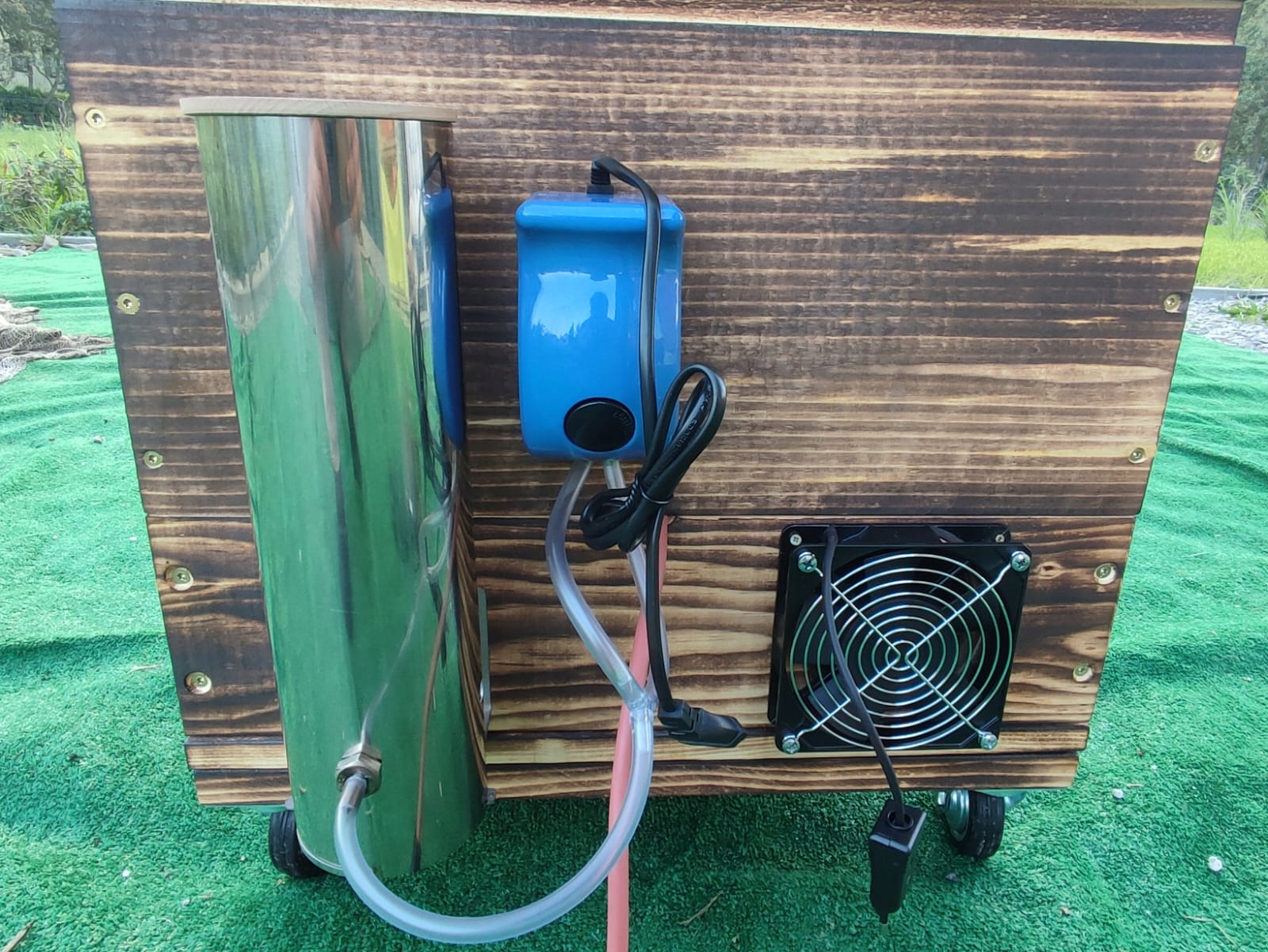 Коптильня стоит на больших резиновых колесах, поэтому благодаря весу ее без проблем можно передвигать по тротуару.