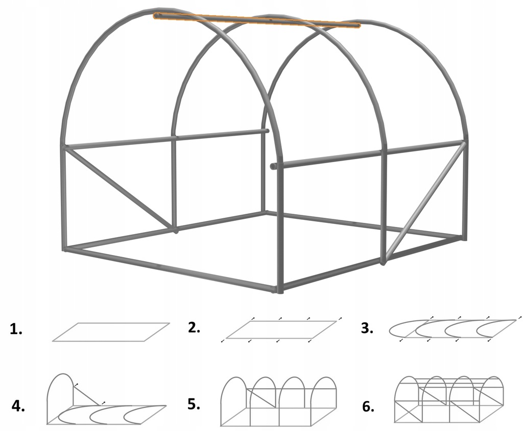 Шаг 5. Расположите все арки, соединив их верхней перекладиной. Однако не затягивайте все винты полностью.