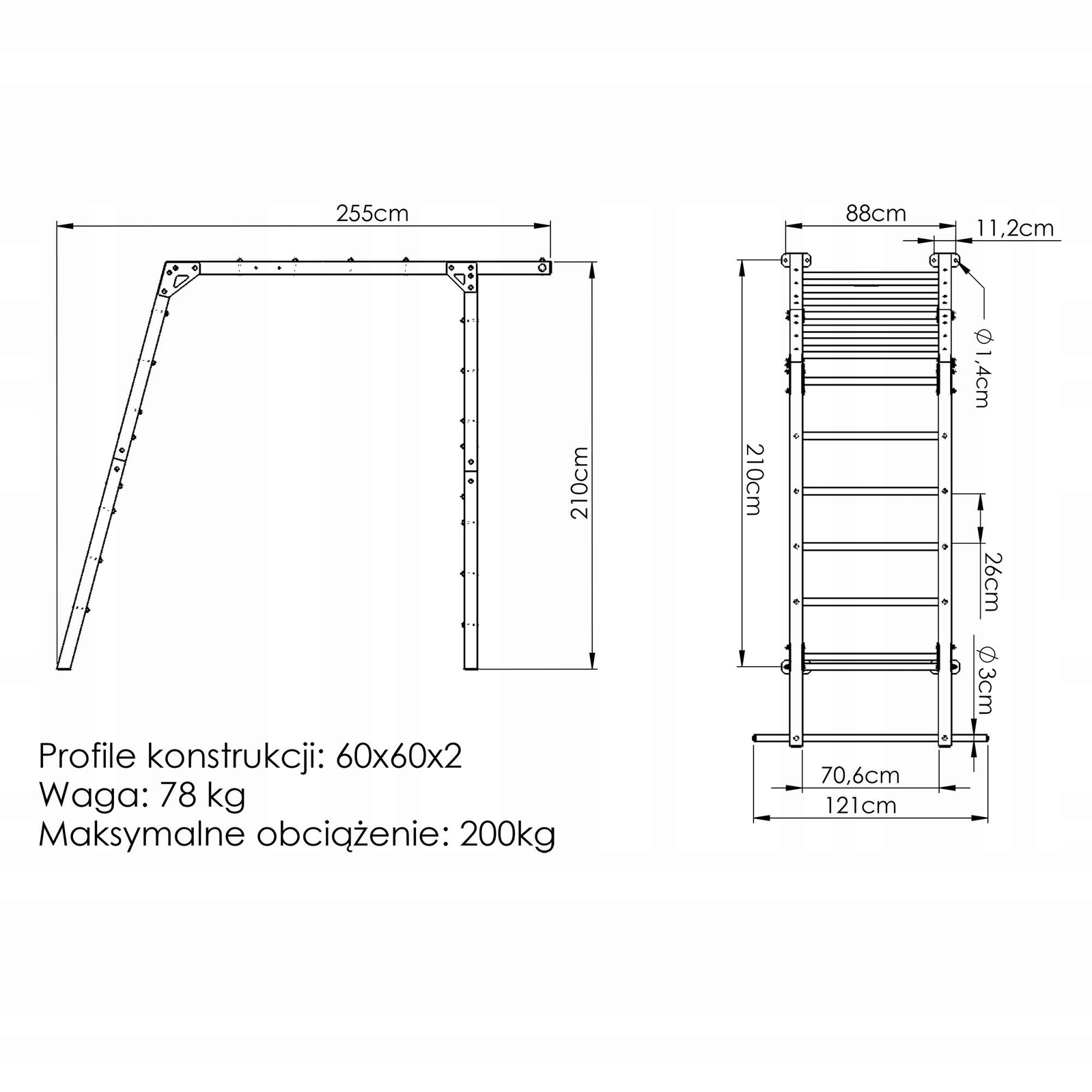 Многофункциональная садовая лестница MO-016 от Marbo Sport является идеальной базой для тренировок и игр на свежем воздухе - 3 уровня тренировки, прочность 200 кг, можно расширить с помощью качелей. Для детей, взрослых и всей активной семьи.