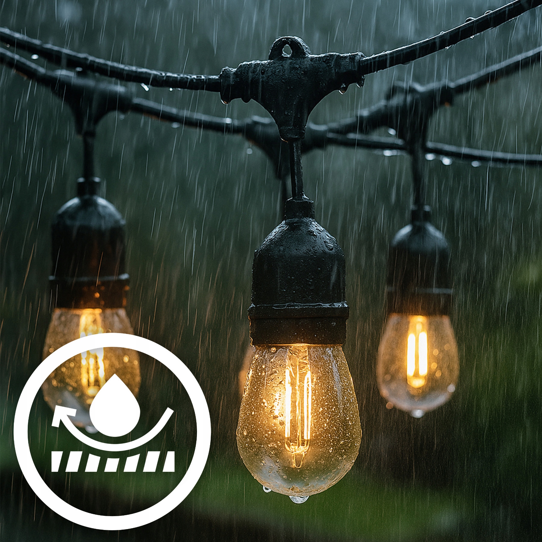 ⭐ КЛАСС ГЕРМЕТИЧНОСТИ IP65 – гирлянда устойчива к дождю, влаге и пыли идеально подходит для сложных условий на открытом воздухе.
