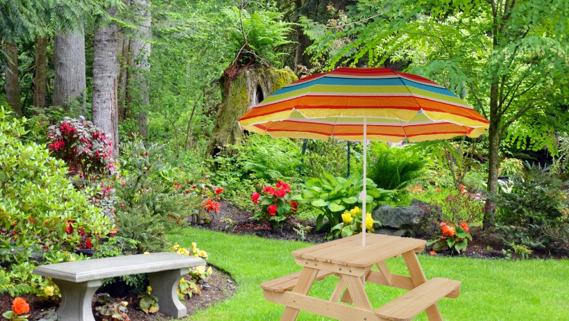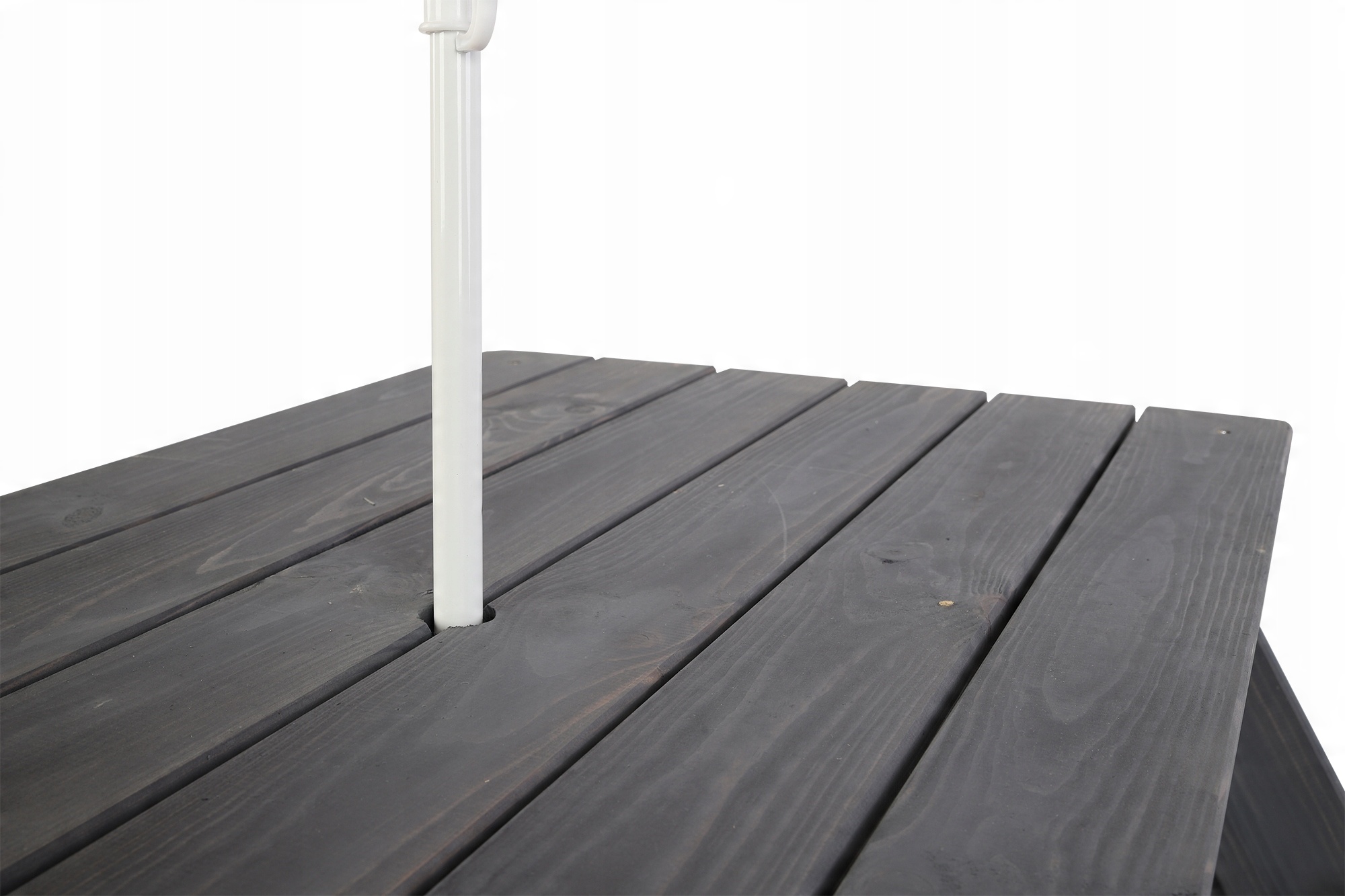 В центре столешницы имеется отверстие для вставки стойки для зонта.