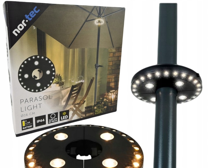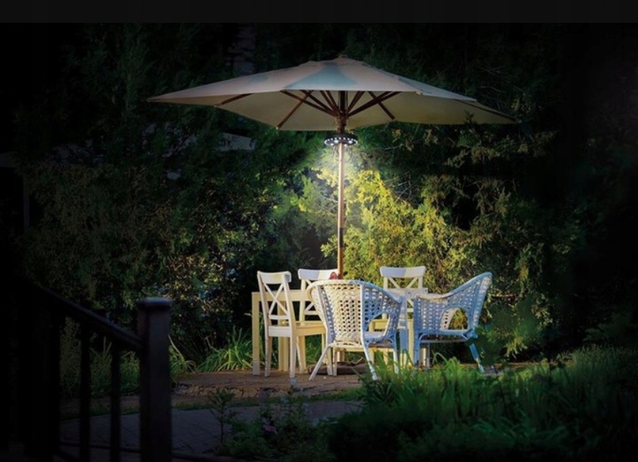 Благодаря практичному освещению садового зонта вы создадите дополнительную атмосферу на террасе , на балконе или даже в палатке! Продукт очень универсален, его можно использовать, среди прочего, в (палатка, кемпер, машина, кемпинг, дом, гараж, сад, беседка, терраса...). Самым важным преимуществом является то, что вам не нужна розетка, а изделие работает от батареек!