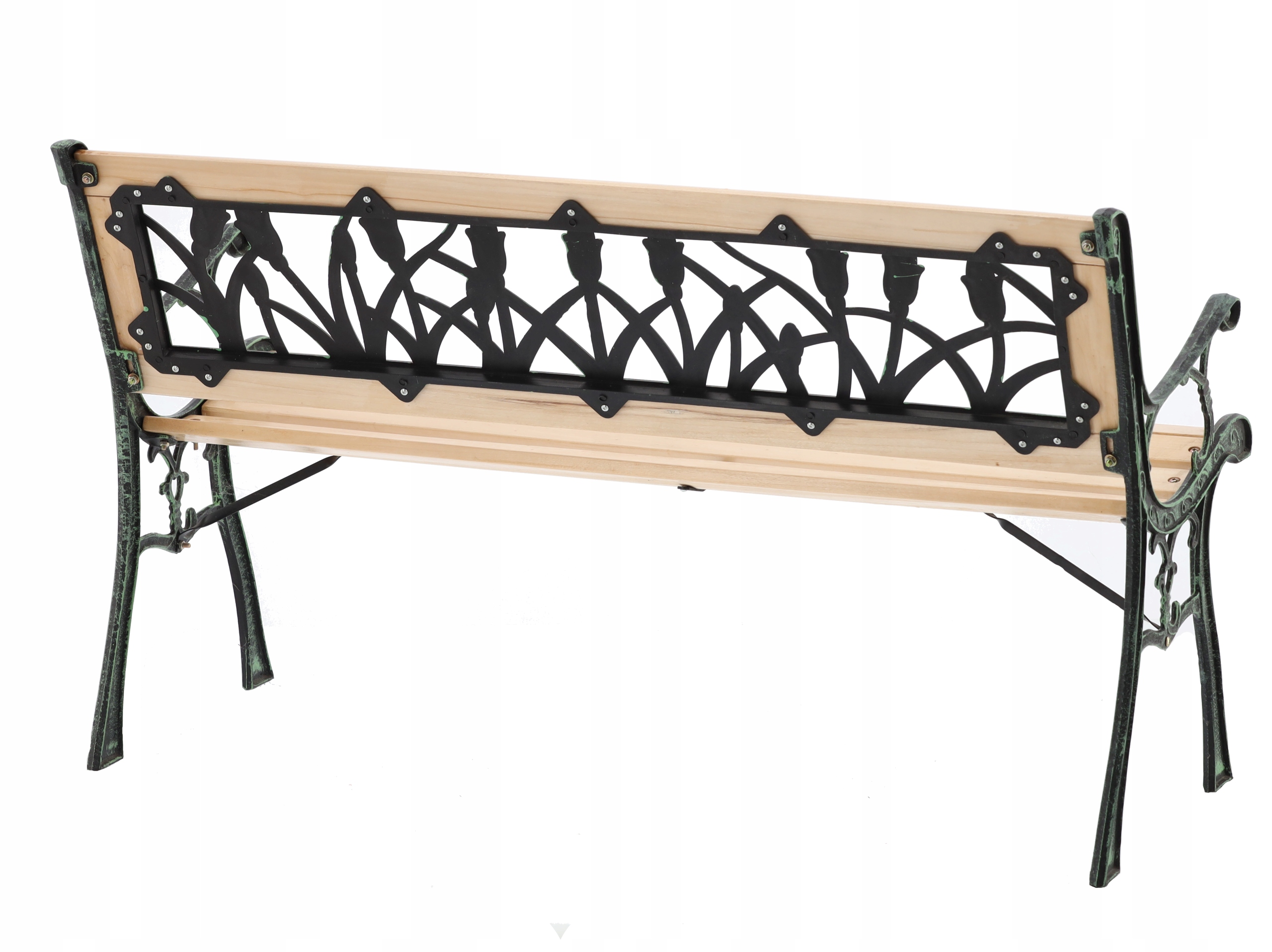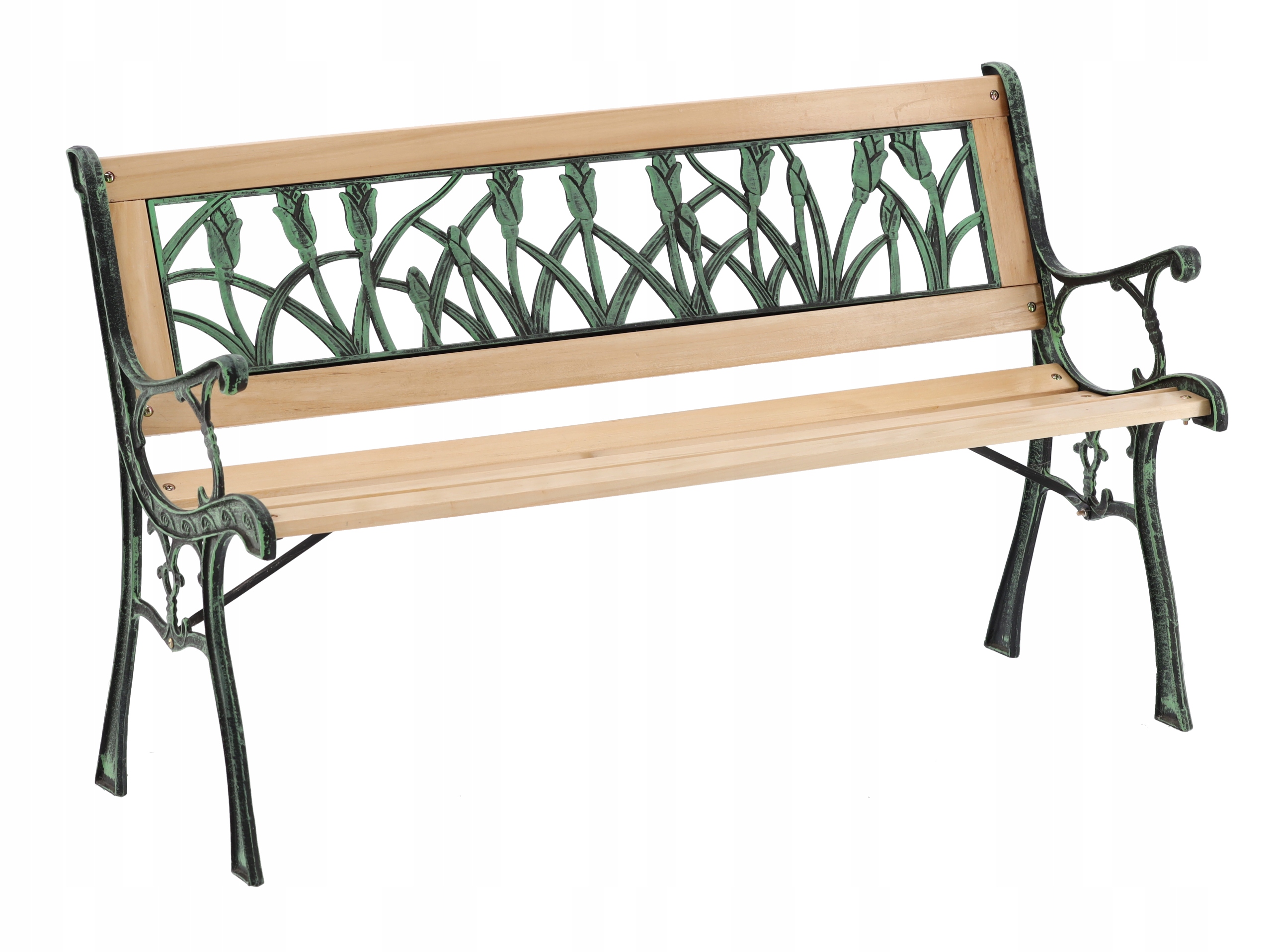Красивая, практичная, декоративная садовая скамейка из серии GARDEN LINE – изделие для Вас и Вашего сада! Скамейка изготовлена из прочных материалов. Боковые элементы из декоративного чугуна. Древесина, пропитанная и лакированная под давлением. Спинка изготовлена из дерева, а декоративные элементы – из пластика, имитирующего чугун.