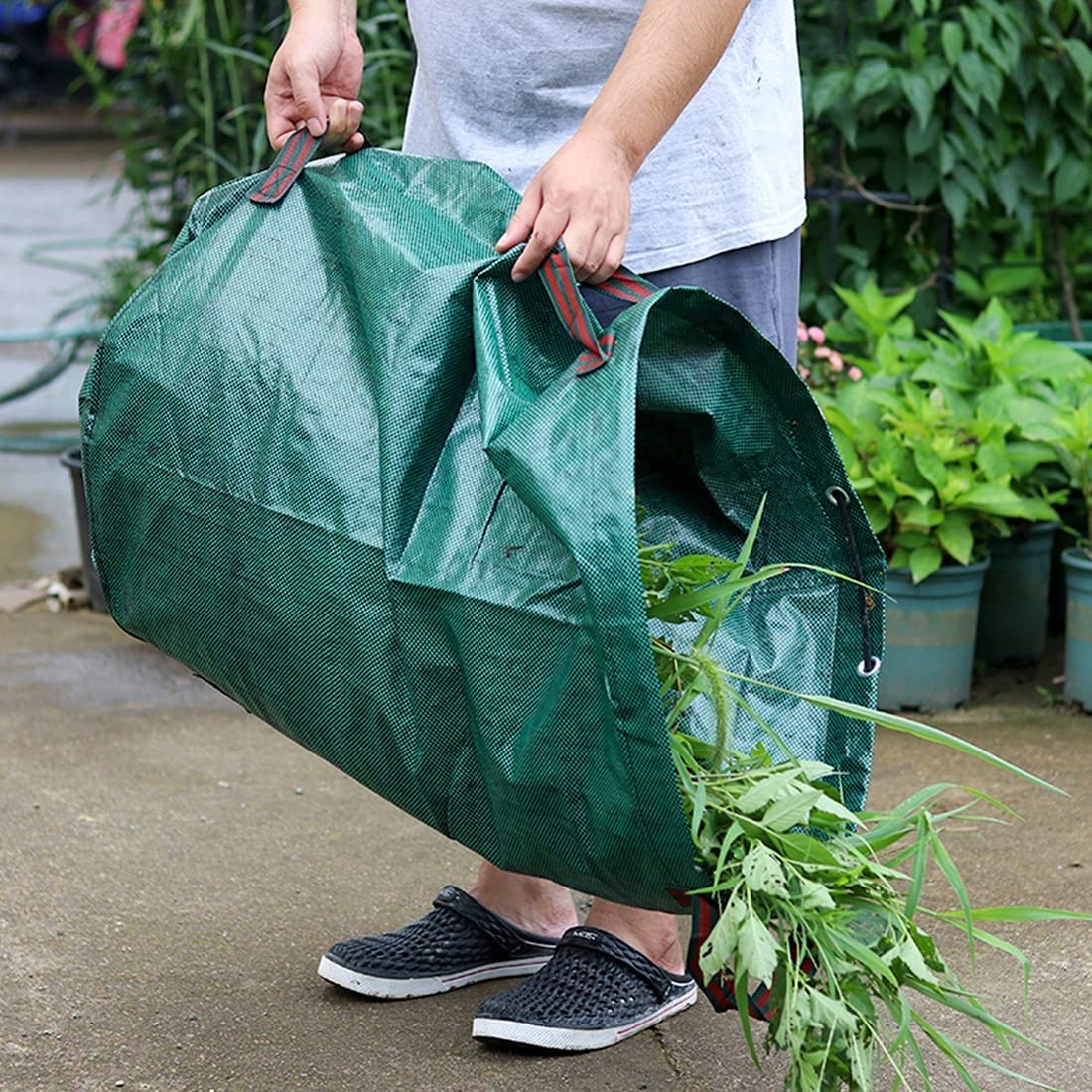 Садовую сумку можно сложить, чтобы она не занимала много места, когда она не используется или при транспортировке, а материал с покрытием можно легко содержать в чистоте, поскольку он не впитывает влагу и запахи .