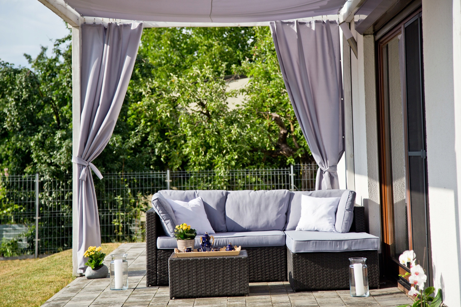Наши шторы изготовлены из ткани, которая не дает каплям воды впитываться – вода стекает по ним, благодаря чему штора отлично защищает от небольшого дождя, позволяя наслаждаться свежим воздухом. даже в плохую погоду.