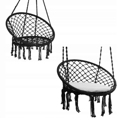 Наше подвесное кресло выглядит чрезвычайно современно и элегантно, добавляя неповторимый шарм любому интерьеру или саду. Его уникальный дизайн и привлекательный, расслабляющий цвет станут прекрасным украшением и обогатят эстетику любого места, где он установлен. Красивое макраме, то есть декоративная бахрома, являющаяся квинтэссенцией эстетики стиля бохо, делает его еще более очаровательным. Эти изящные и точно выполненные детали непременно привлекут внимание и добавят неповторимости. Эта тонкая плетеная отделка подчеркивает ее художественный и дизайнерский вид.