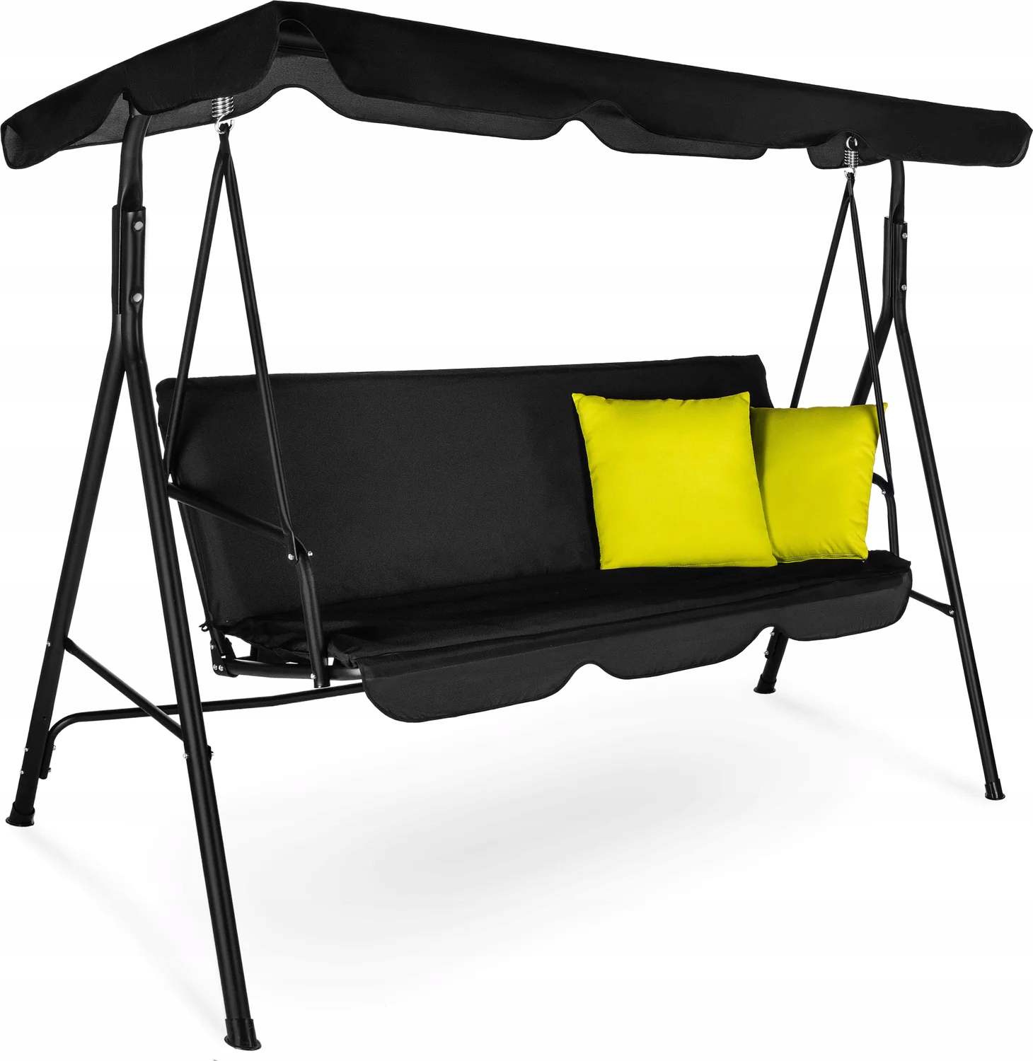 Устойчивая конструкция качелей обусловлена высокопрочной стальной рамой с порошковым покрытием и коррозионной стойкостью и неблагоприятными погодными условиями. В комплекте с качелями вы получитенабор из 2-х подушек одинакового цвета, которые повысят комфорт отдыха и придадут качелям эстетичный и уютный вид.