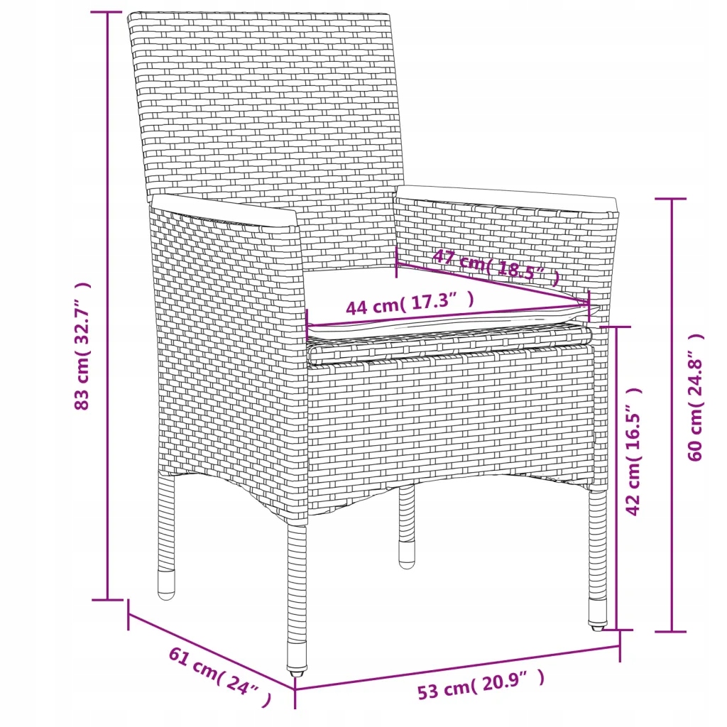 - Размеры подушки для сиденья: 44/39 x 46 x 2,5 см (ширина x греческий)