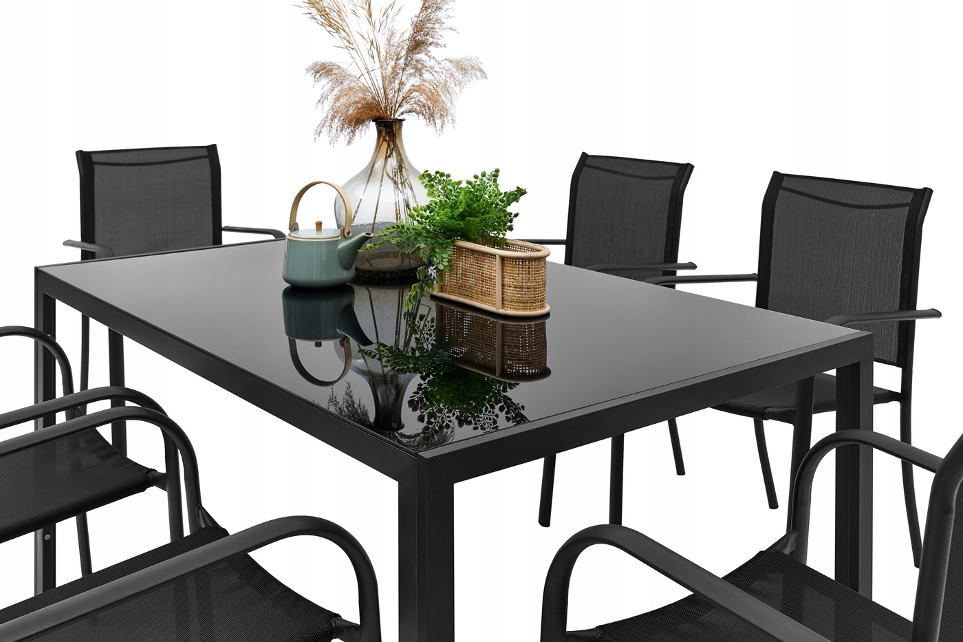 набор садовой мебели идеально подходит для вашего сада. Рамка была двойной порошкой, которая идеально адаптируется, что этот продукт используется внутри и снаружи. Сиденье стула и спинка были сделаны из черной гибкой текстильной обивки, чтобы как можно больше увеличить комфорт. У этого есть две боковые спинки. Используемые материалы не требуют частого технического обслуживания, устойчивы к погодным условиям и не требуют особого ухода. Ноги дополнительно оснащены пластиковыми крышками. 5 мм