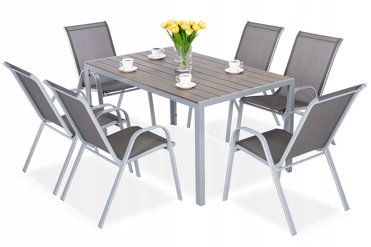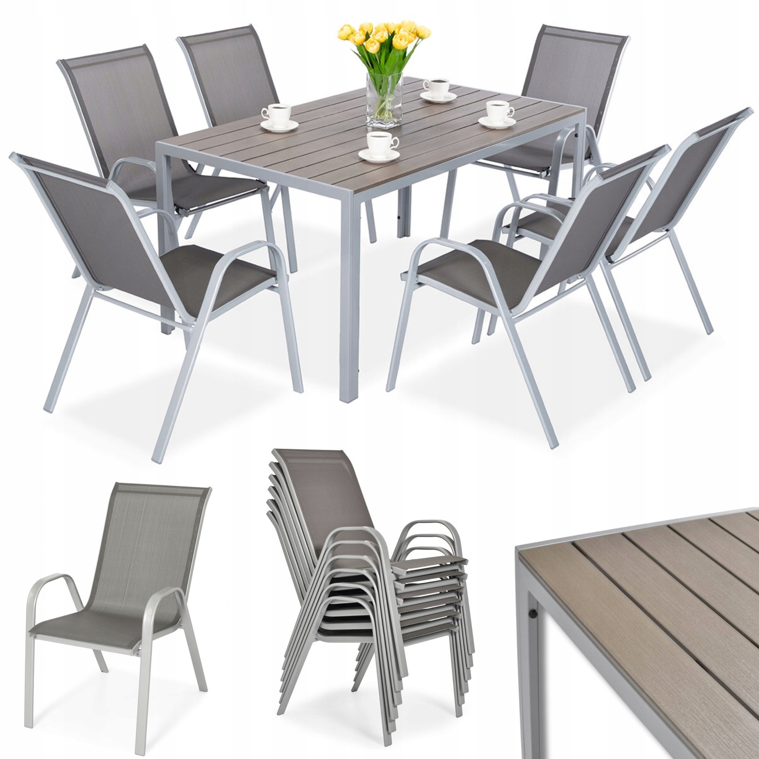 Стильный и функциональный набор , идеально подходит для террасы или внутреннего дворика. состоит из просторного стола и удобных стульев, создавая набор, идеально подходящий для большой семьи и любителей встреч на открытом воздухе. Больше места и наслаждайтесь комфортом во время праздников и отдыха в саду.