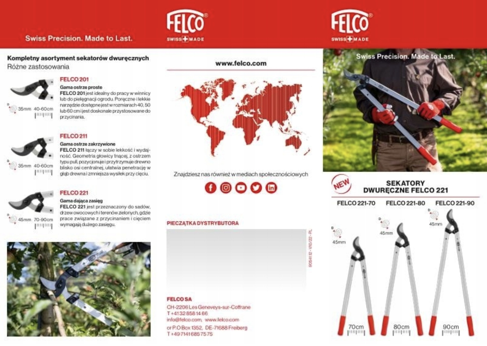 Сегодня FELCO стремится к инновационным и долговечным решениям для коммерческого рынка секаторов и режущих инструментов. Стратегия компании сильно ориентирована на профессиональный рынок, но она также заботится и о домашних пользователях своих инструментов.