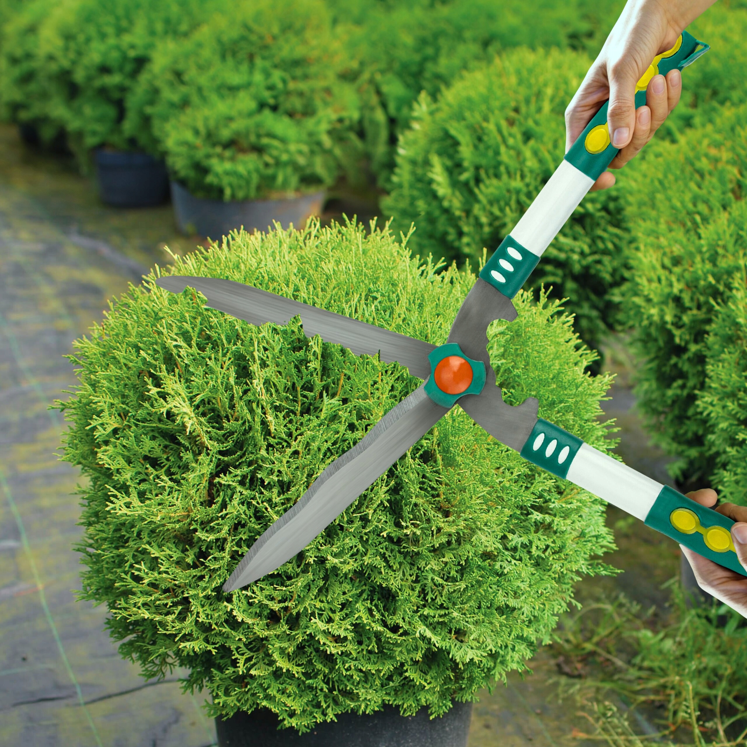 Наши ножницы являются отличным выбором для резки побегов деревьев и кустарников, образуя живую изгородь, обрезая траву вокруг обнаружений 🌾 или удаление засохших цветов 🌺. Благодаря легкому дизайну и хорошо продуманной форме, инструмент отлично лежит в ваших руках и позволяет вам работать долго без усталости 💪.