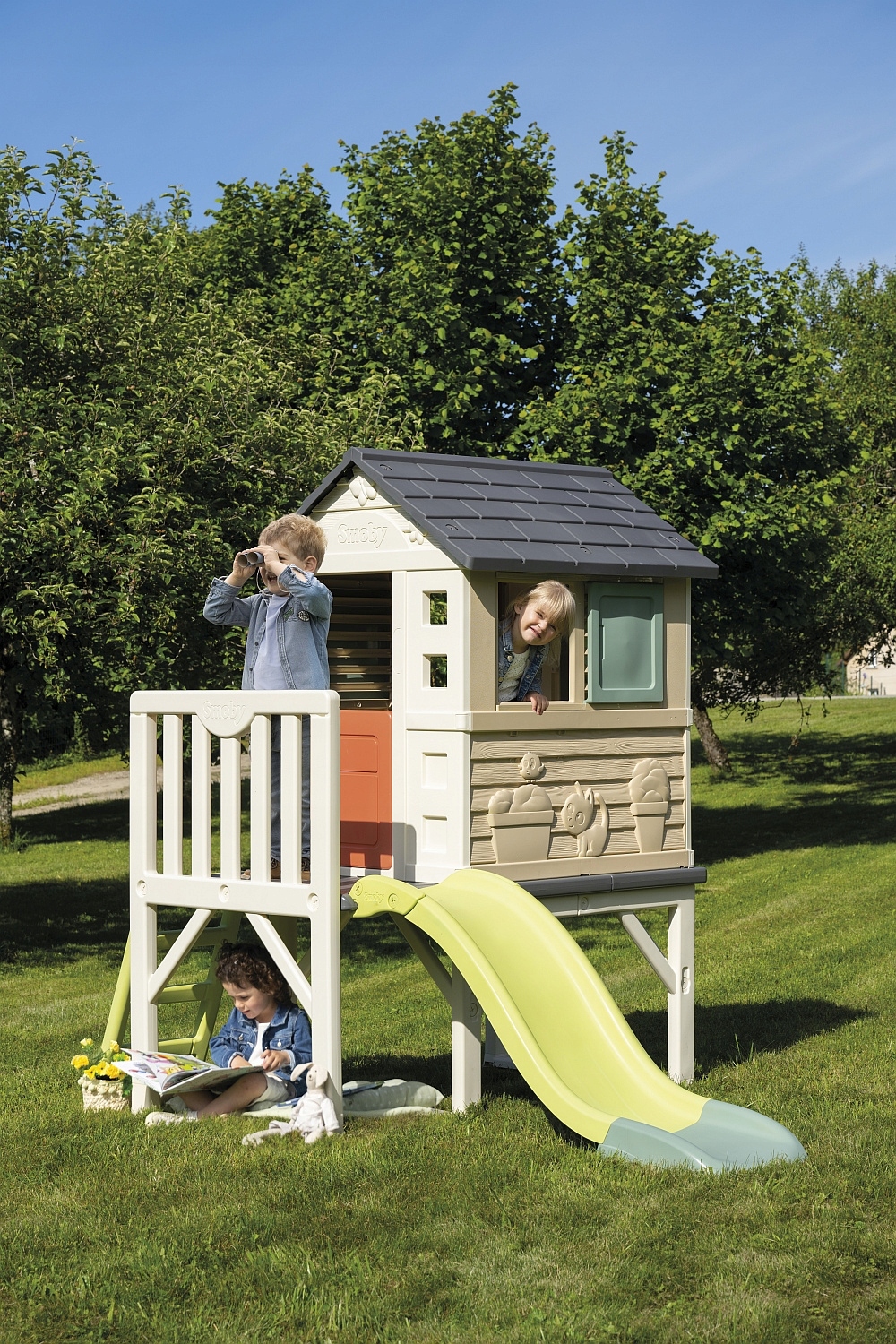 САДОВЫЙ ДОМИК ДЛЯ ДЕТЕЙ НА КАУДАРСТВЕ С ГОРКОЙ Большая ДЕТСКАЯ ПЛОЩАДКА XL SMOBY