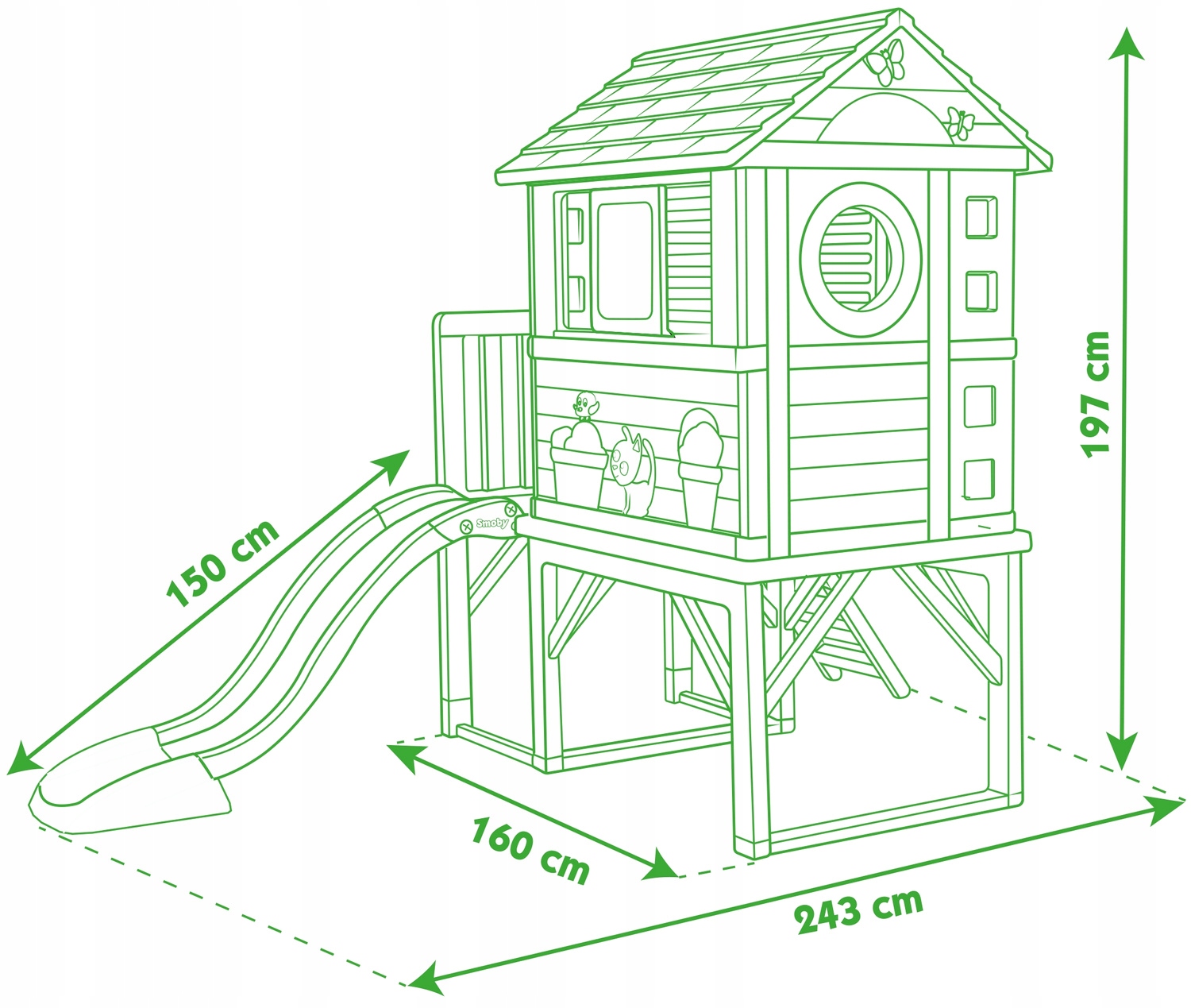 Игра в домике разовьет физическую форму, стимулирует творческие способности и воображение и обеспечит фантастическую активность на многие часы. Несомненным преимуществом дома является простота сборки и устойчивость. Высококачественные материалы и материалы, использованные при его изготовлении, гарантируют безопасное развлечение на долгие годы.