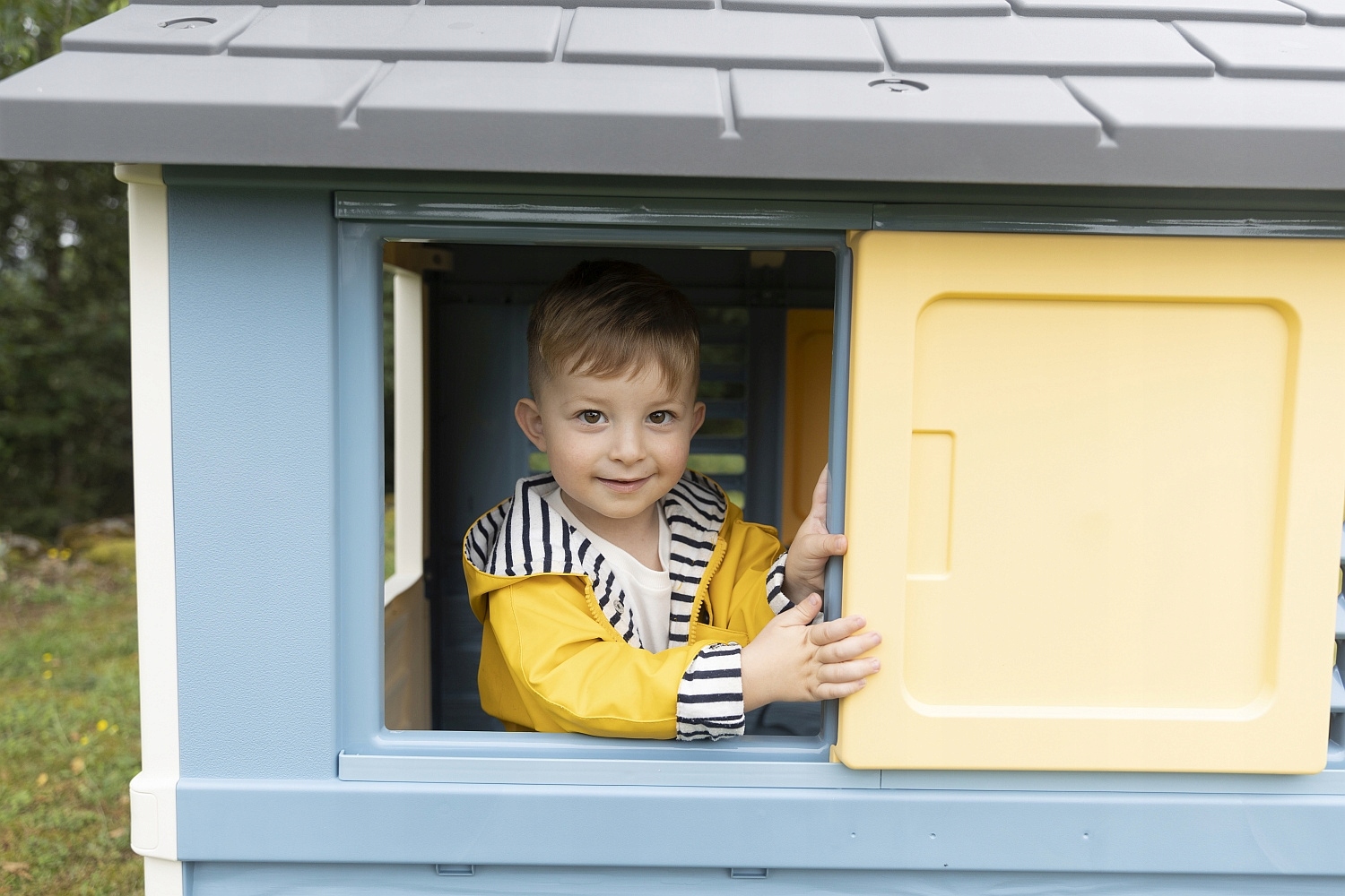 Высокое качество пластмасс и материалов, используемых для того, чтобы сделать его гарантирует безопасное развлечение в течение многих лет . Материал, из которого изготовлен дом, полностью устойчив к погодным условиям и покрыт , обеспечивающим долговечность цвета и предотвращение их исчезновения на солнце. Это совершенно безопасная игрушка, подходящая для использования как снаружи, так и в домашнем интерьере.