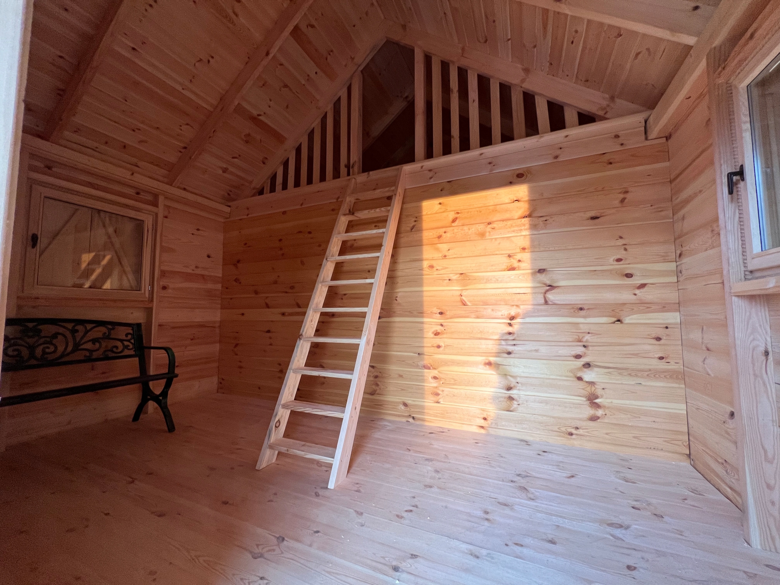 Состоит из помещения площадью 10м2,дополнительно имеет мезонин, который расположен над складским помещением, благодаря чему его площадь 6м2 можно использовать два раза. В доме также имеется крытая терраса площадью 8м2