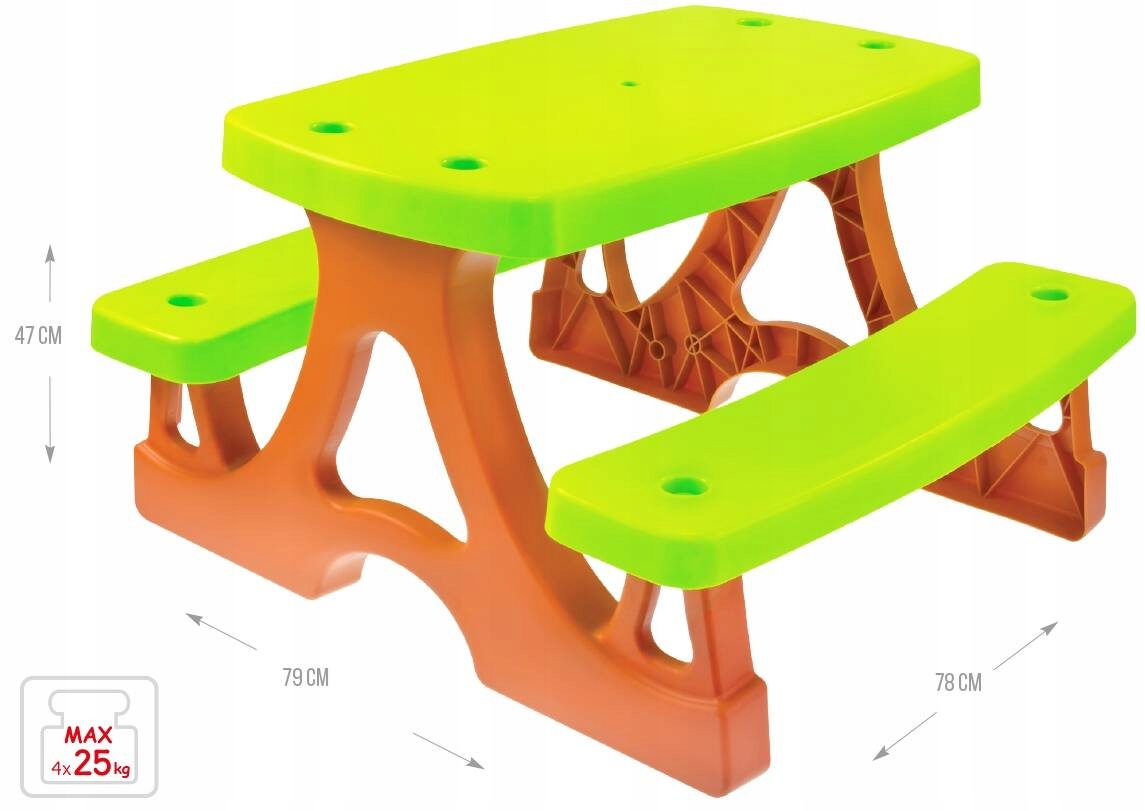 Сенсационный, красочный стол со скамейкой – замечательная мебель для детской комнаты. Он также отлично подойдет для пикника в саду или на дачном участке. Легкий и прочный, его легко передвигать. Он имеет закругленные углы, безопасен для вашего ребенка, а прочный материал, из которого он изготовлен, и легко моющаяся поверхность позволяют легко содержать его в чистоте. Простая конструкция обеспечивает простую сборку без использования инструментов и облегчает транспортировку.