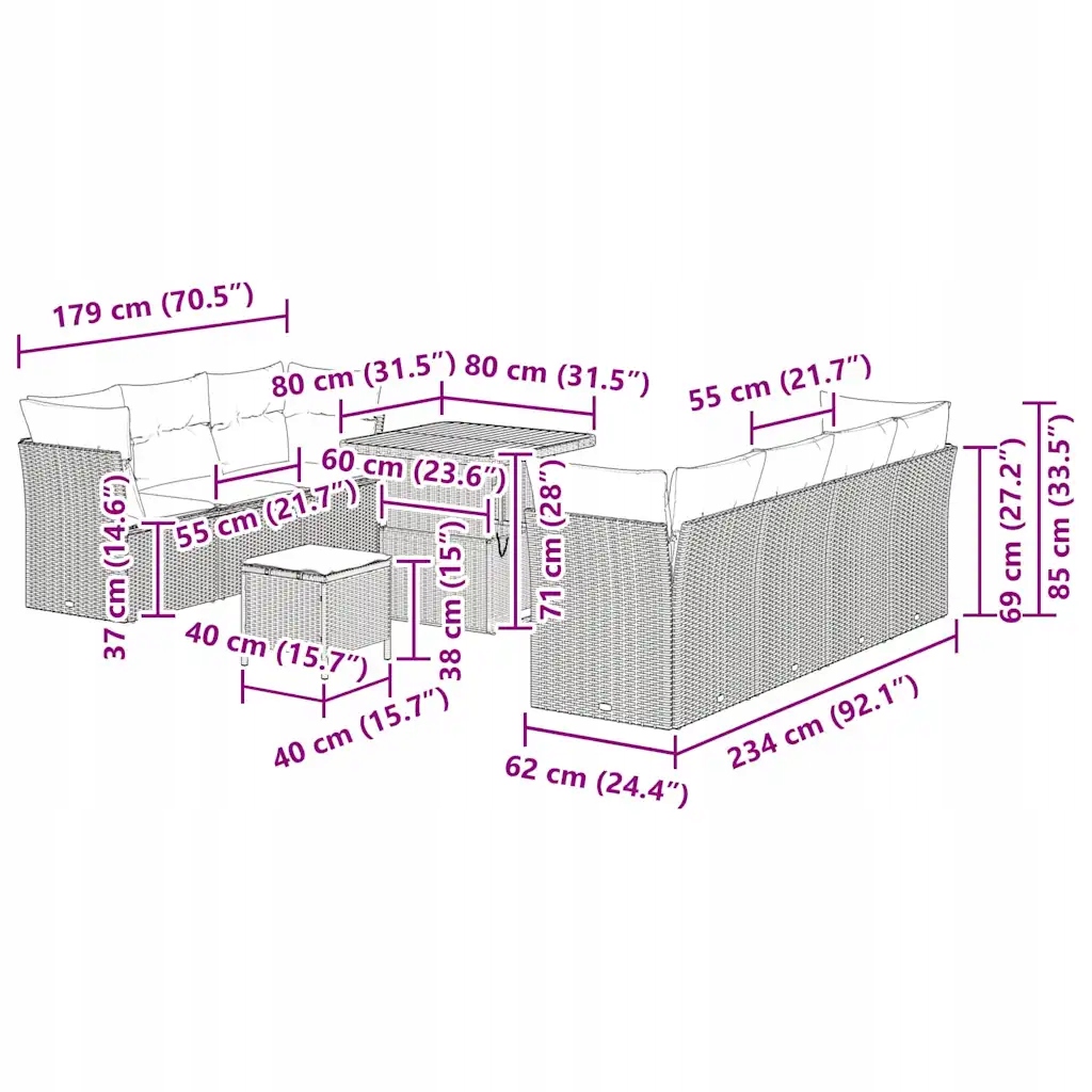 Модульная конструкция позволяет легко реорганизовать элементы, идеально адаптируя комплект к любому пространству. Благодаря плетеному вручную полиротангу комплект прочен и эстетичен в различных погодных условиях. Регулируемые ножки обеспечивают устойчивость на неровной поверхности, что делает этот диван практичным выбором для любого патио или сада.