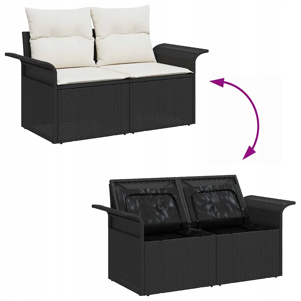 Набор садовых диванов из УФ-полиротанга, черный, 5 мест