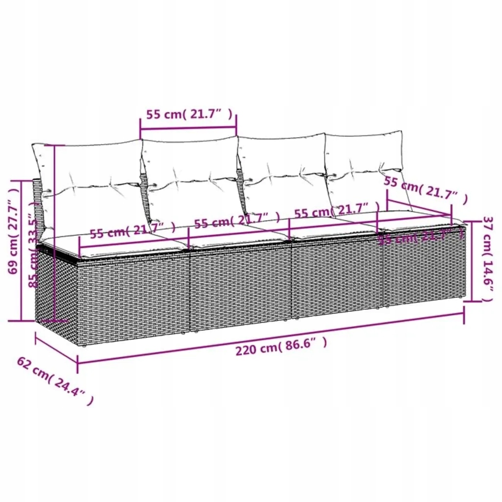 Садовый диван с подушками, 4 человека, коричневый, полистан