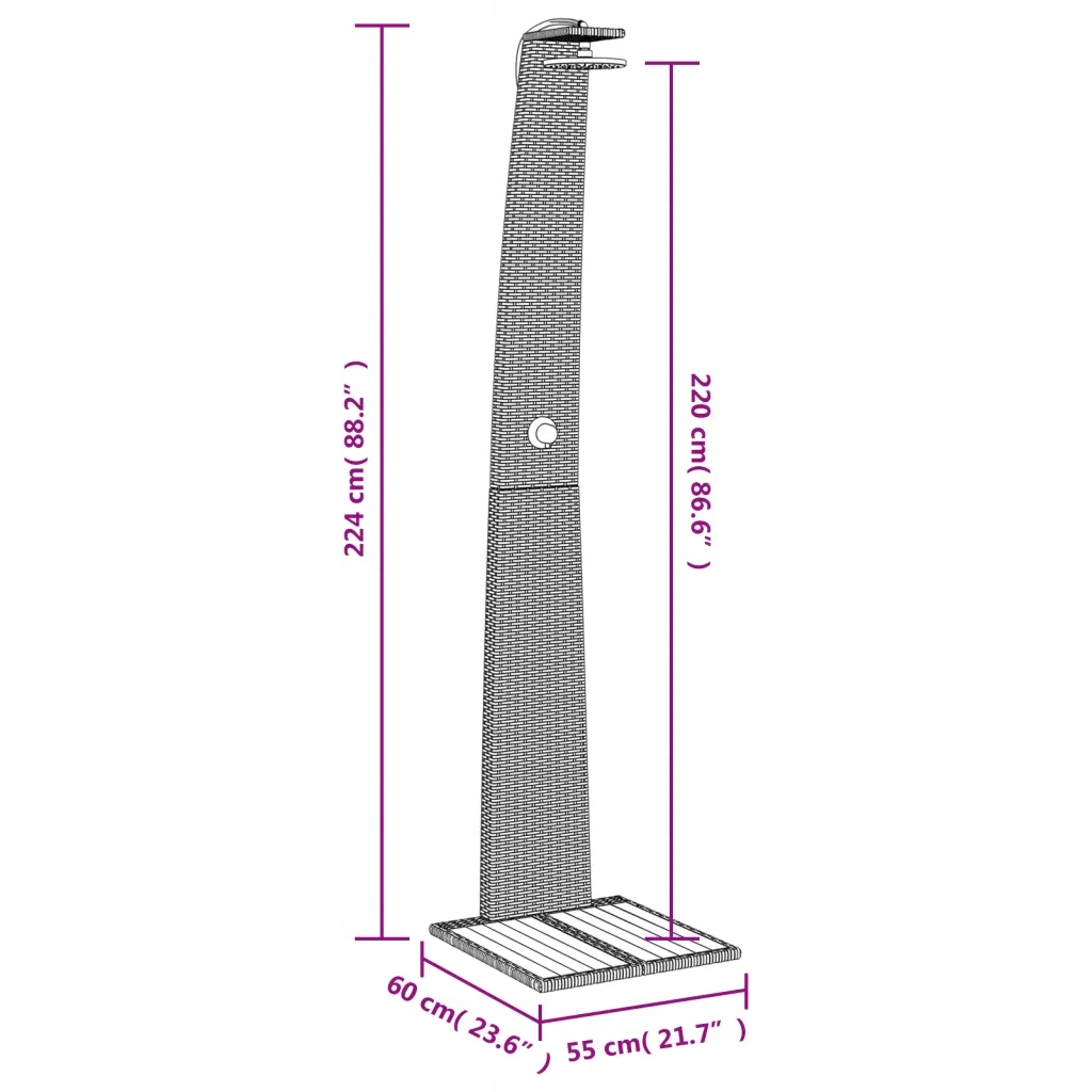 садовый душ из полиратетана, бежевого, деревянного основания, размеров 55x60x224 см, ультрафиолетовое излучение h1>
