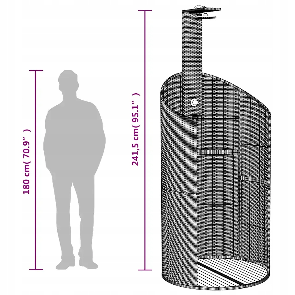 Садовый душ из полиратанга, Черный, 100х100х241,5 см