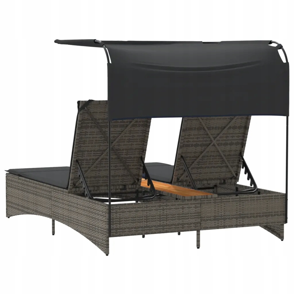 Двойной садовый шезлонг с навесом, серый, 136x202x140 см