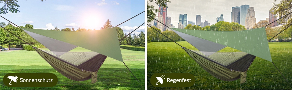 ▶️Тентовый чехол, защита от дождя и ветра: Гамак с тентовым чехлом. Дождевик (размеры по диагонали 310 х 310 см) изготовлен из ткани Оксфорд 400D с водонепроницаемым полиуретановым покрытием толщиной 1500 мм. Покрытие обеспечивает защиту от дождя и ветра. Легкий, водонепроницаемый, простой в сборке.