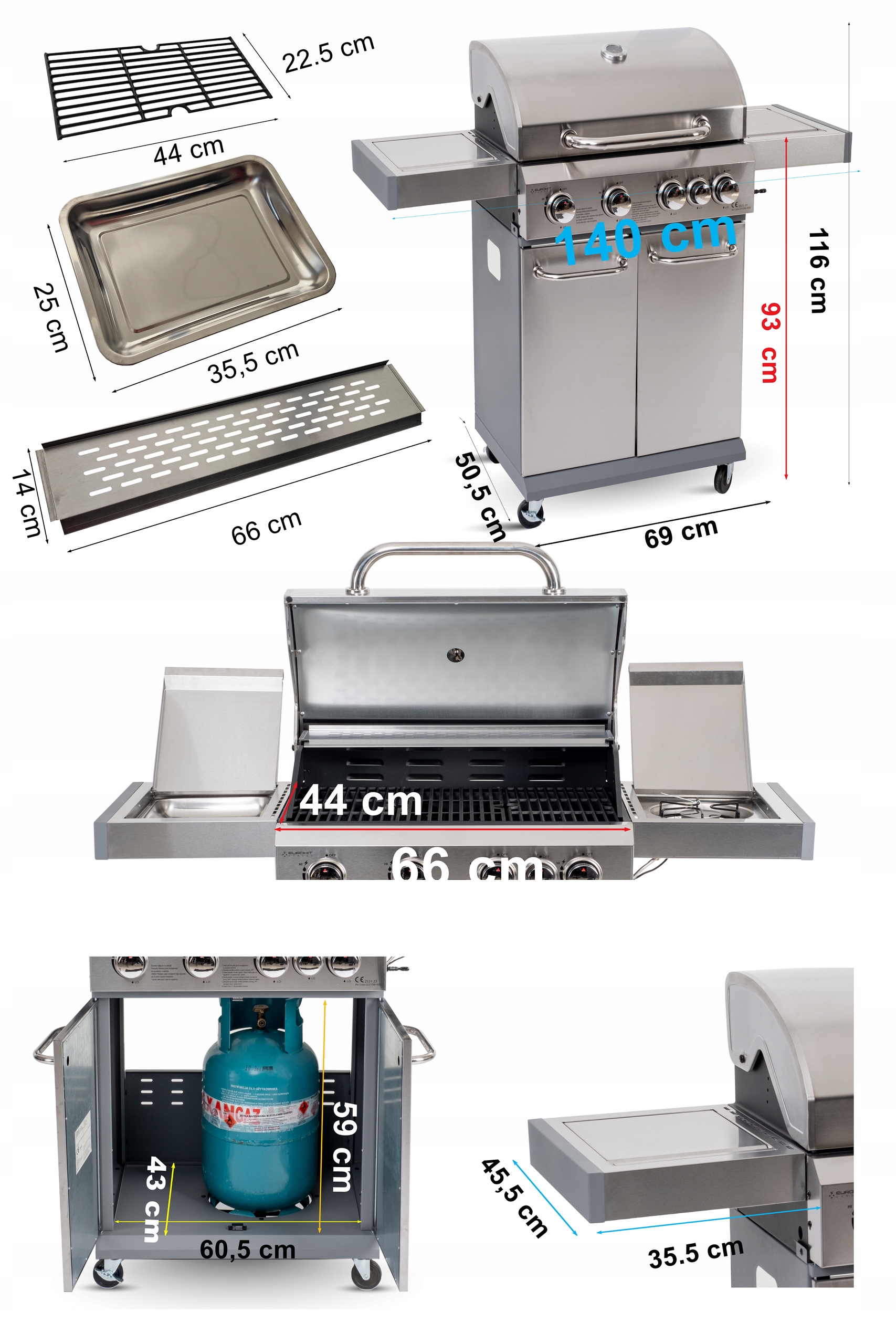 Газовый гриль 4+1, садовый, чугун, нержавеющая сталь