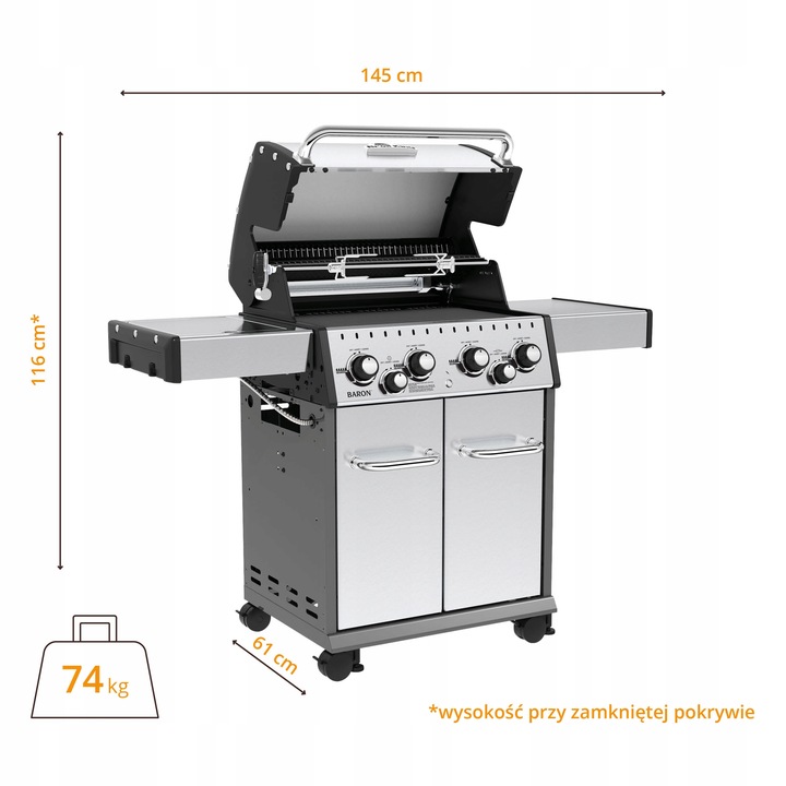 Газовый гриль Baron 490 предлагает мощность и эффективность, способные оправдать ожидания даже самых требовательных грильщиков.