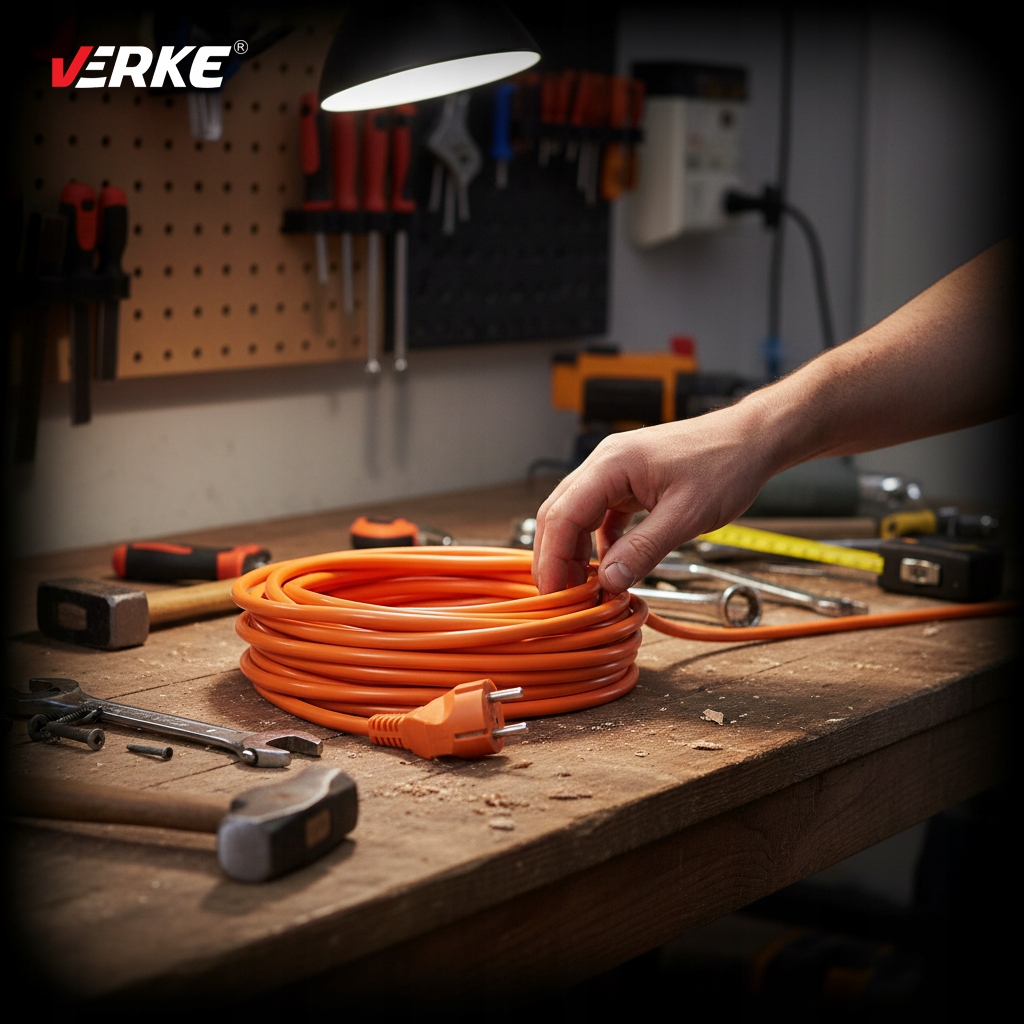 Удлинитель бренда VERKE длиной 20 метров - незаменимый аксессуар там, где нужен надежный и безопасный источник питания на большем расстоянии от розетки. Изготовлен из медного провода 3x1,0 мм², с толстой оранжевой изоляцией, обеспечивает долговечность и высокую устойчивость к механическим повреждениям.