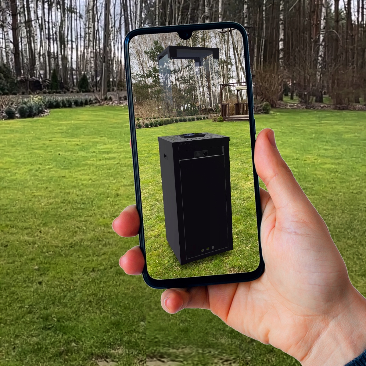 Посмотрите, как выглядит СВЕТОБОГРЕВАТЕЛЬ ПАТИО в виртуальной реальности, вы можете разместить его где угодно: