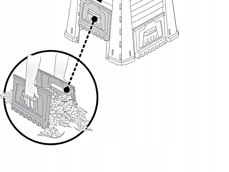 - Компостер имеет верхнюю створку с автоматическим открыванием и нижние створки, выполняющие функцию сборника травы и листьев.