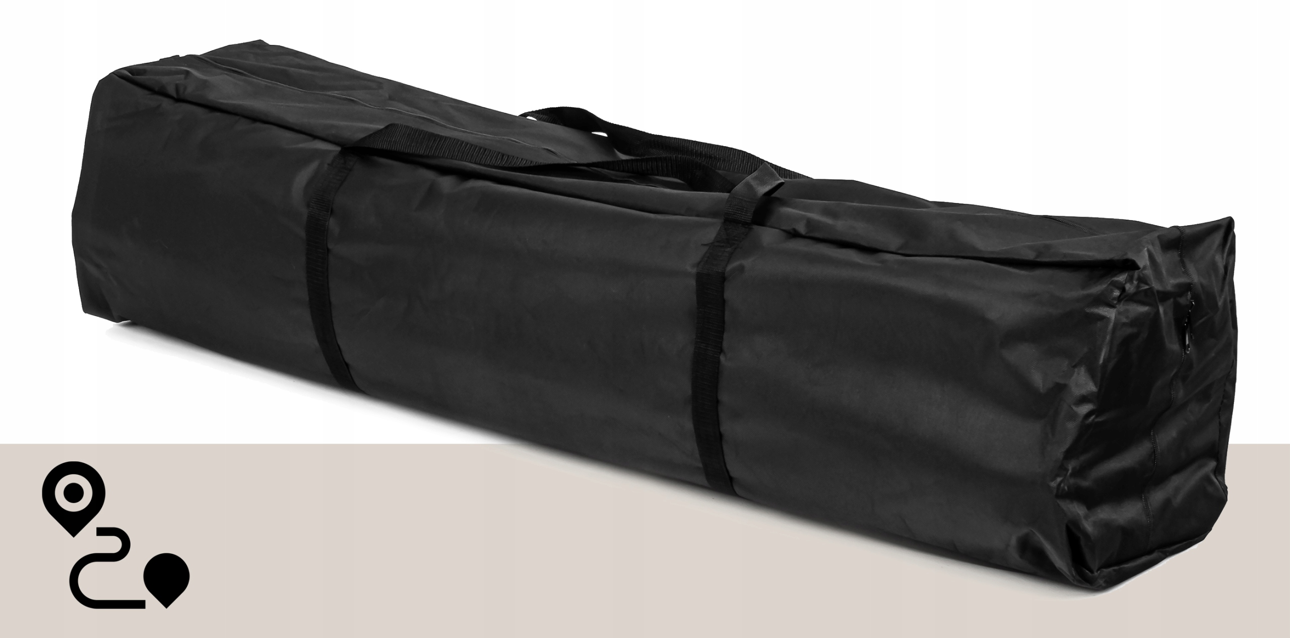 - Входящий в комплект чехол с ручкой позволяет легко транспортировать беседку Hatta Gazebo в выбранное место. Можете быть уверены, что все элементы уберутся, и после сезона сумка идеально подойдет для хранения павильона.