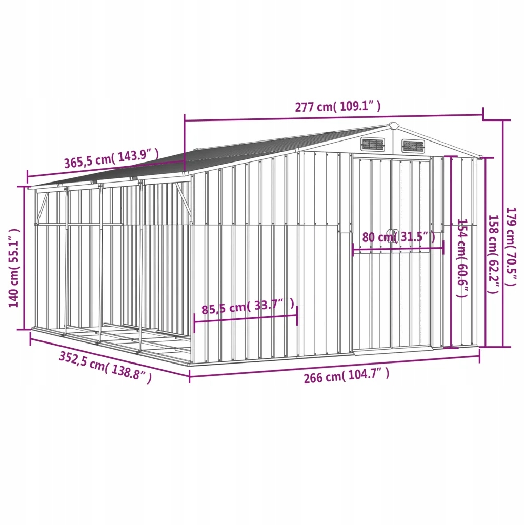 Сарай садовый, зеленый, 277x365,5x179 см, оцинкованная сталь