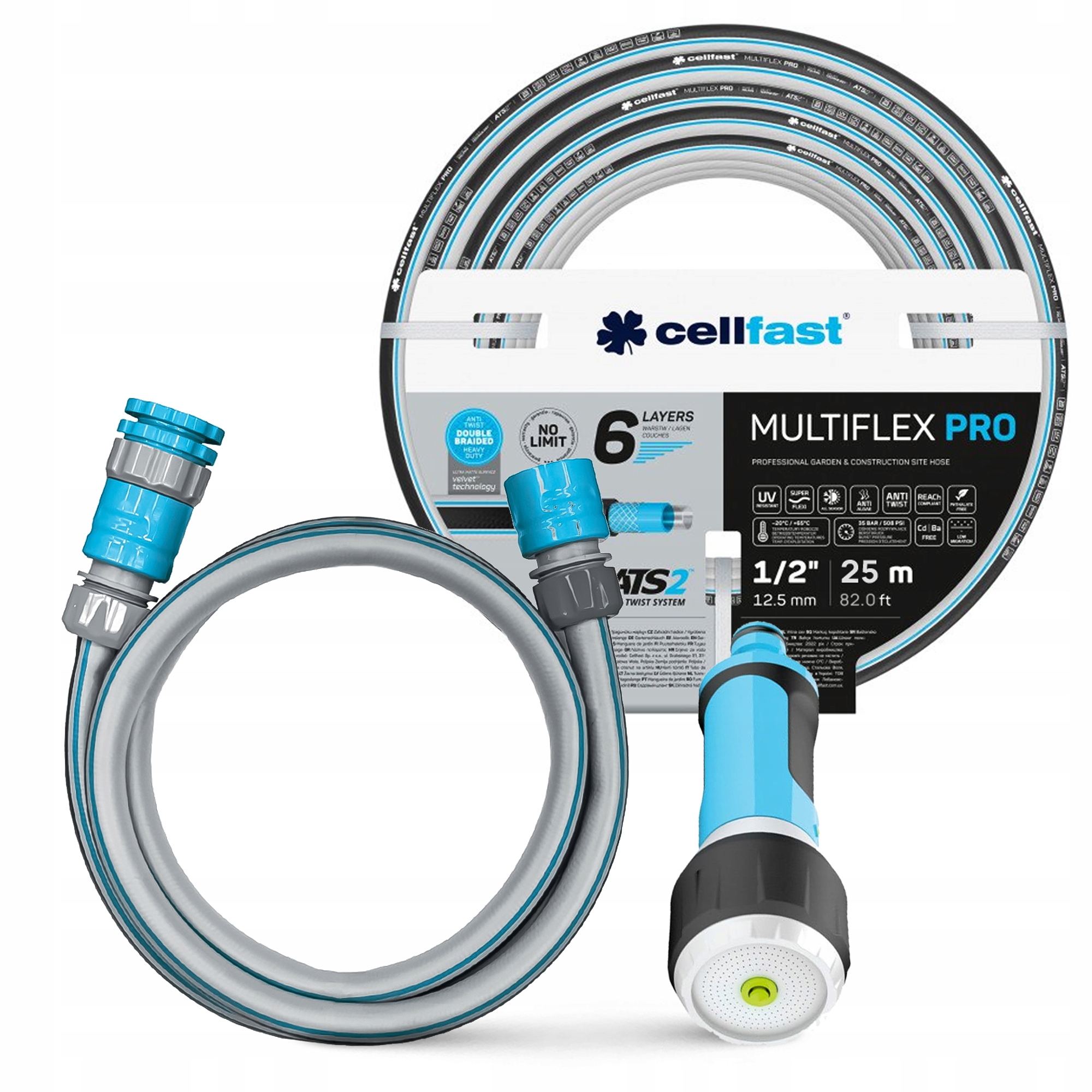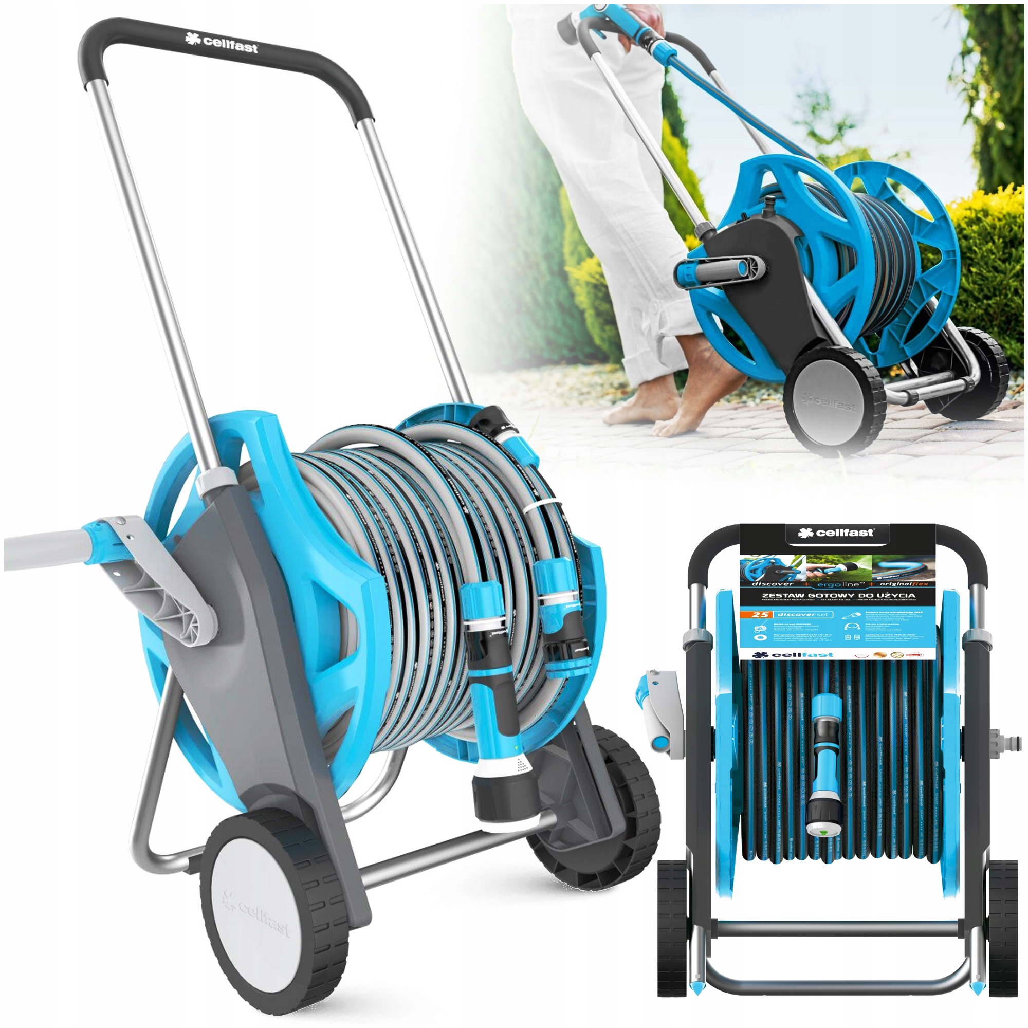 Садовый шланг на тележке. Катушка Cellfast SET STRONG. Разбрызгиватель 1/2 дюйма, 25 м.
