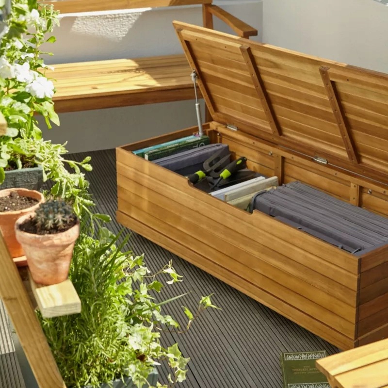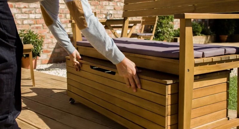 Если вам нравится садовая мебель из натурального материала, вам наверняка понравится коллекция Denie. Скамья предоставит вам комфорт, и вы можете использовать грудь в качестве стола. Вы также будете использовать сундук для хранения необходимых аксессуаров для барбекю или теплых умоляний, которые вы обернете себя в прохладные вечера